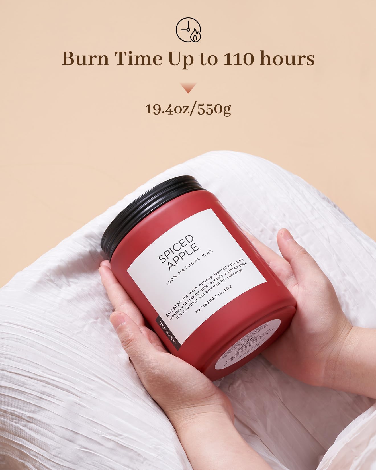M&SENSE Spiced Apple Scented Candles for Home Natural Soy Wax 19.4oz 110 Hours Large Long Lasting Highly Scented Classic Christmas Holiday 2 Wicks Candle Gift Home Decor