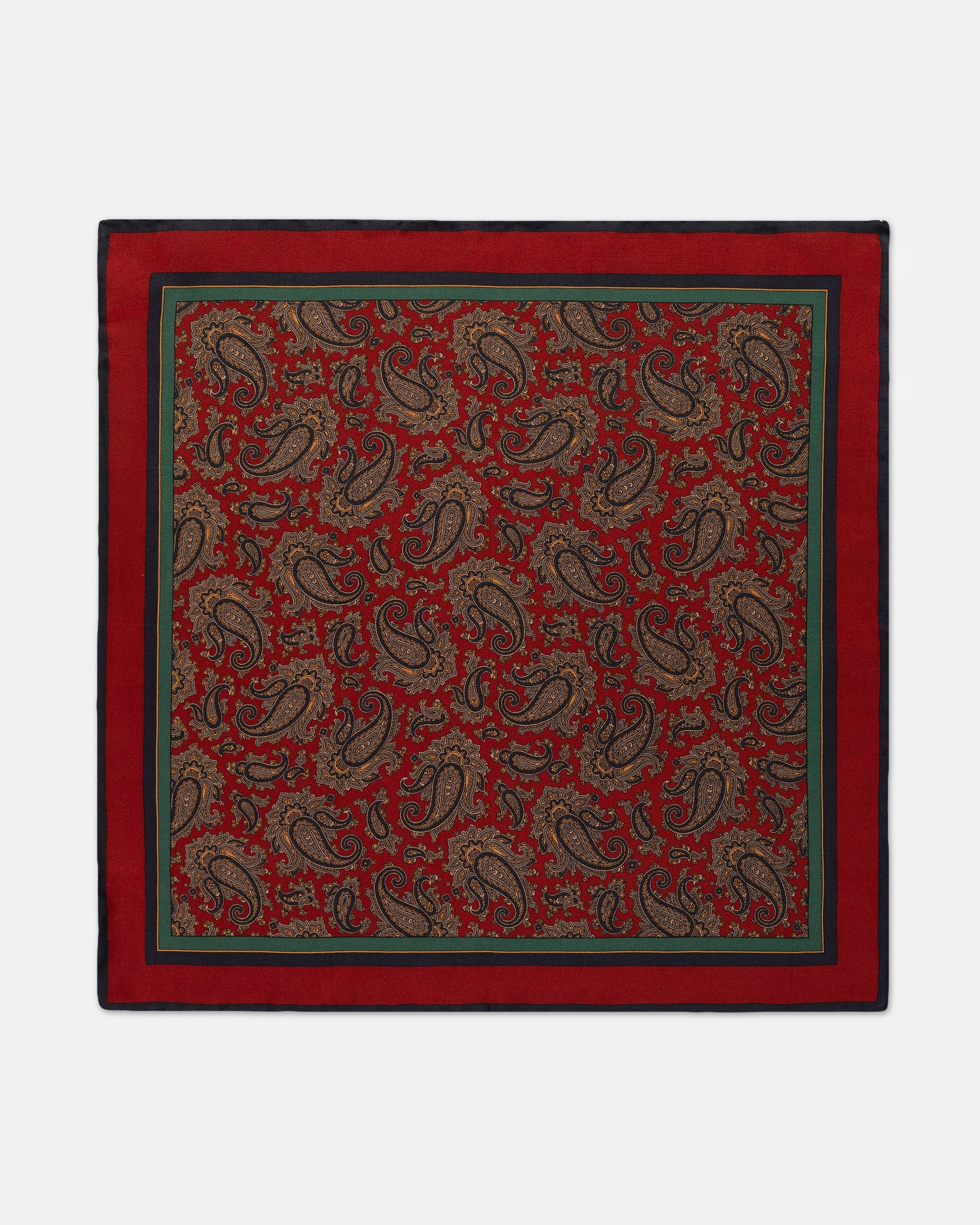Made-in-USA Burgundy Paisley Silk Pocket Square
