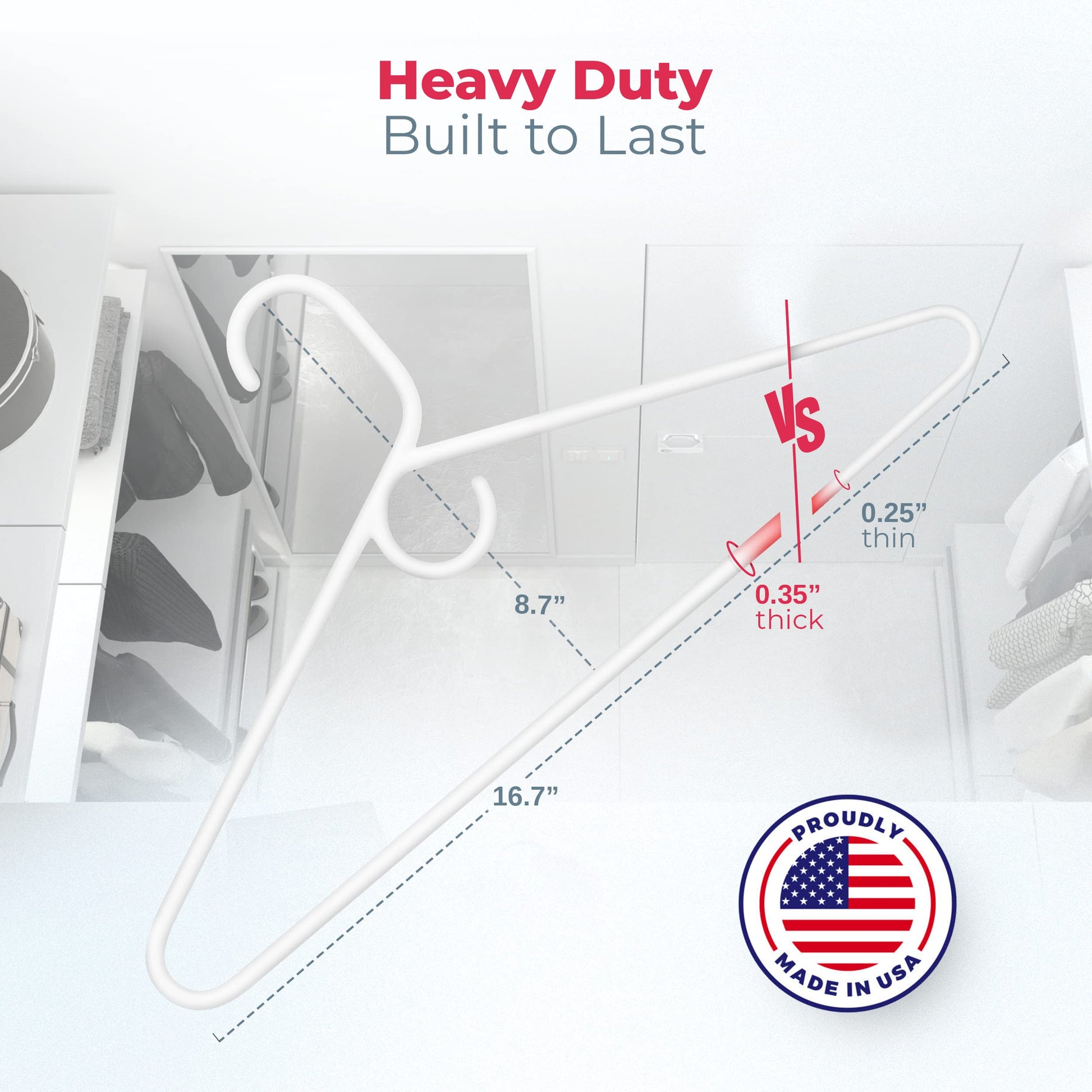 - HEAVY-DUTY CLOSET HANGERS - A plastic hangers bulk set proudly made and packaged in the USA. Try out a coat hangers 36 pack or choose from multiple pack sizes and colors guaranteed to perfectly fit any closet!