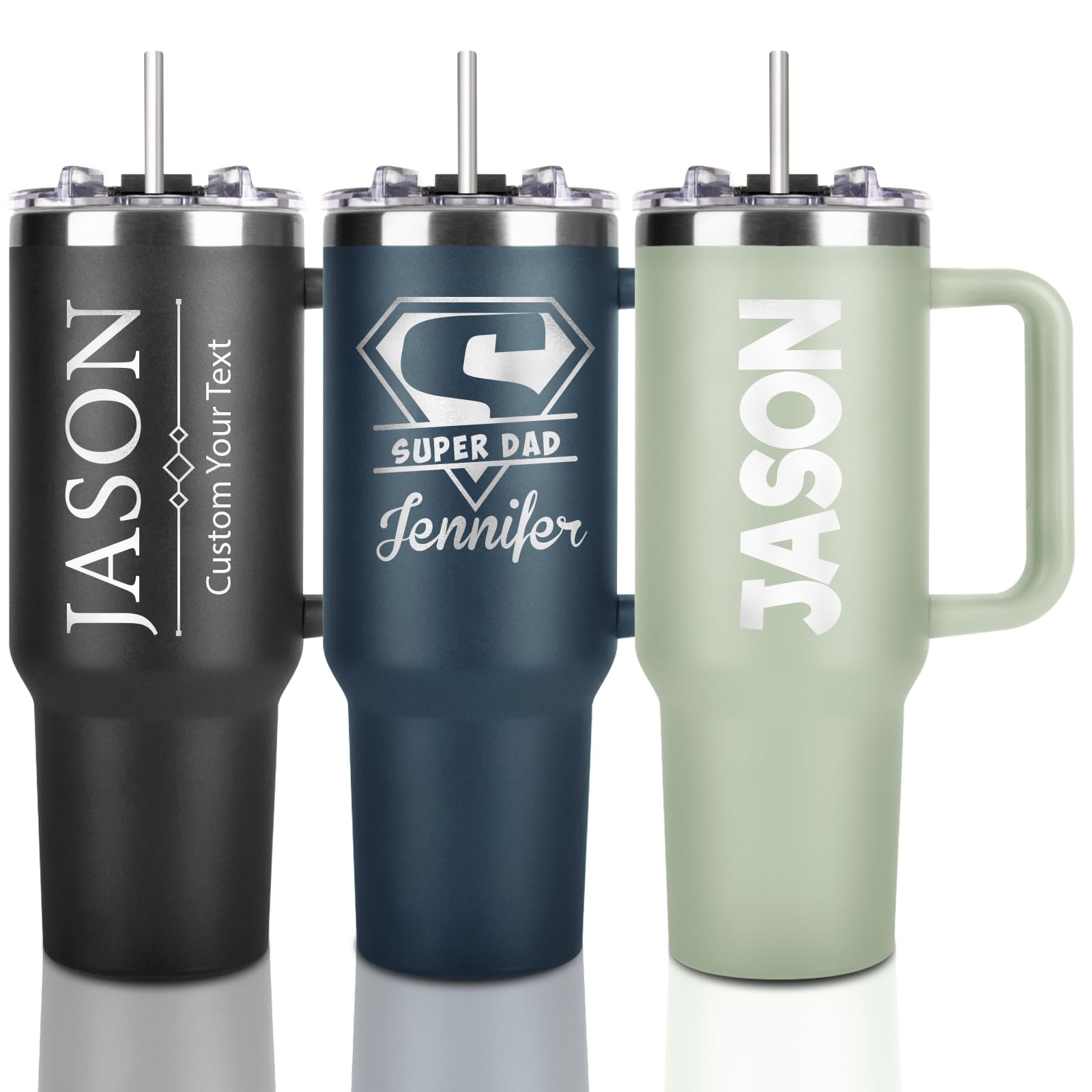 Made in USA - Personalized Tumbler 40oz with Handle and Straw - Custom Stainless Steel Travel Coffee Cup with Engraved Name Text - Personalized Birthday Gifts for Her, Mom, Friends (BLCAK-Men)