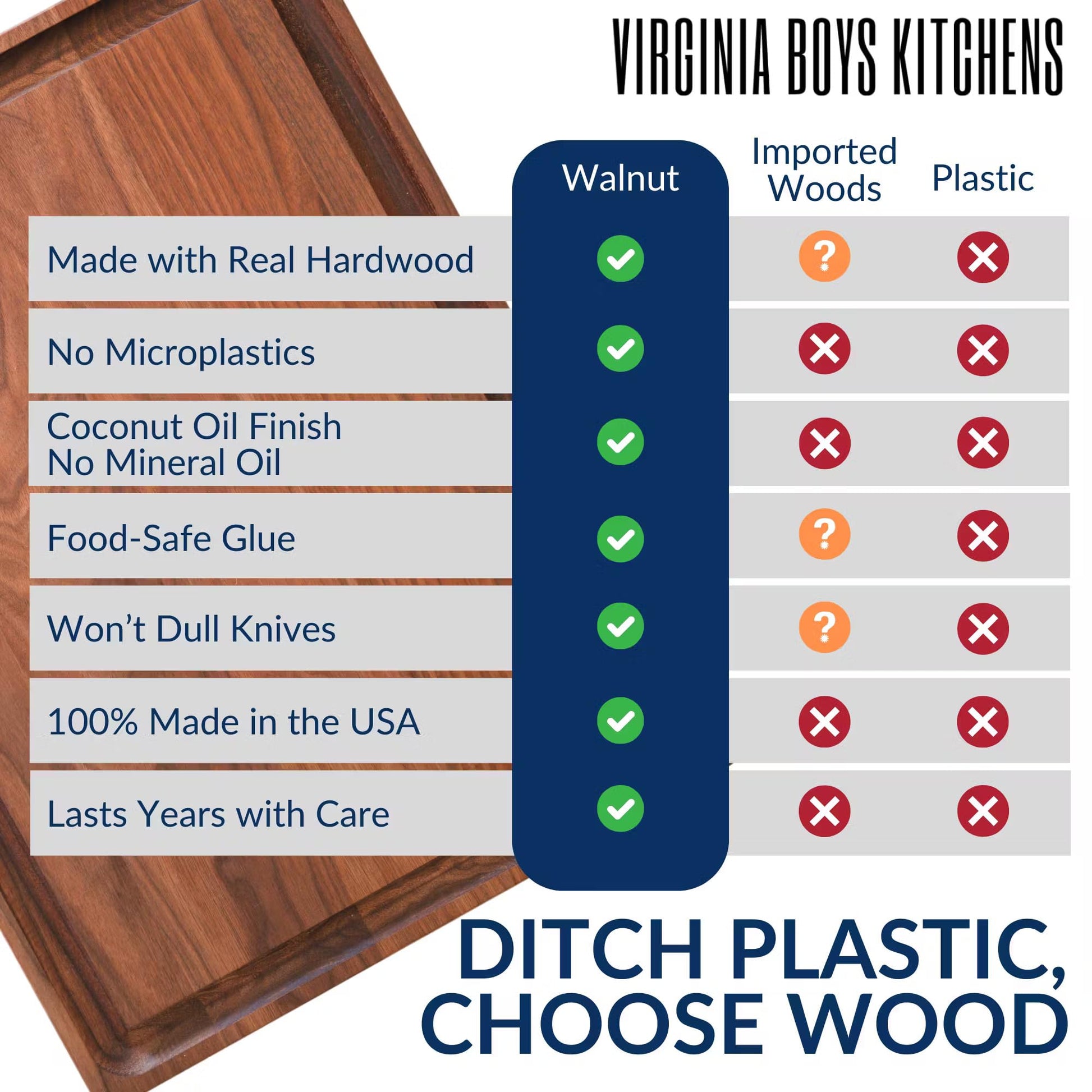 Made in USA Walnut Cutting Board by Virginia Boys Kitchens - Butcher Block made from Sustainable Hardwood