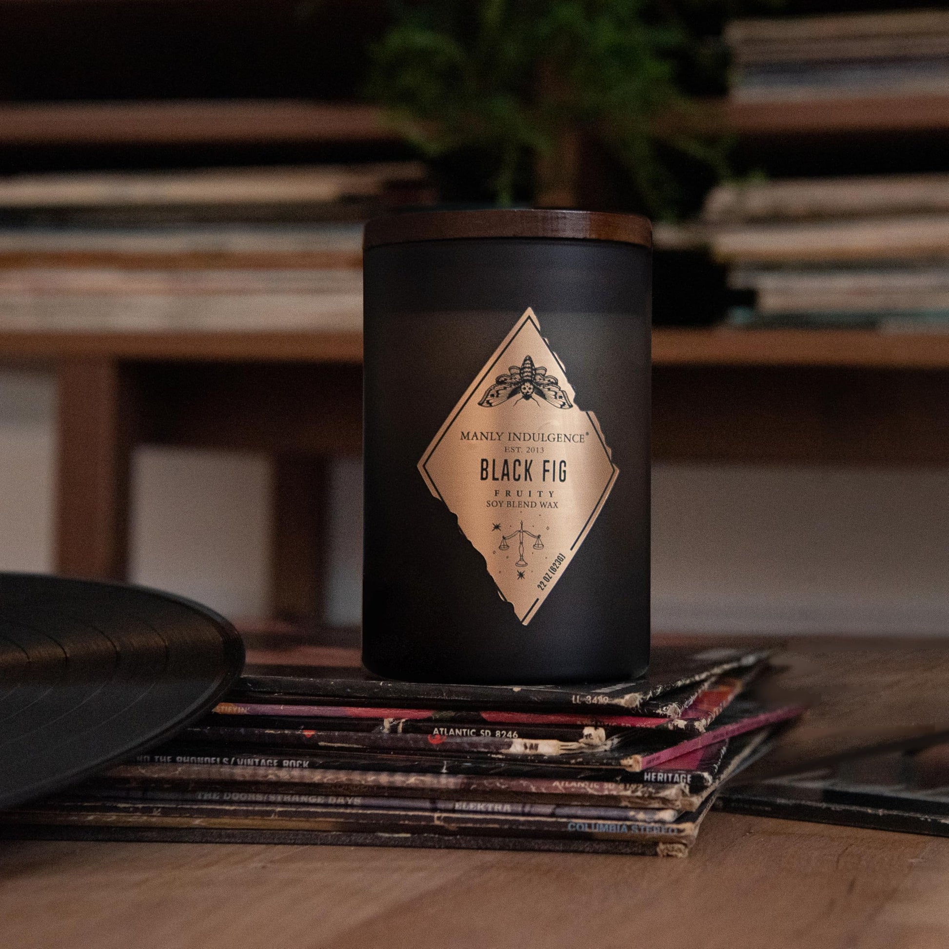 Manly Indulgence Black Fig Scented Jar Candle, Rebel Collection, 2 Wick, Black, 22 oz - Up to 120 Hours Burn