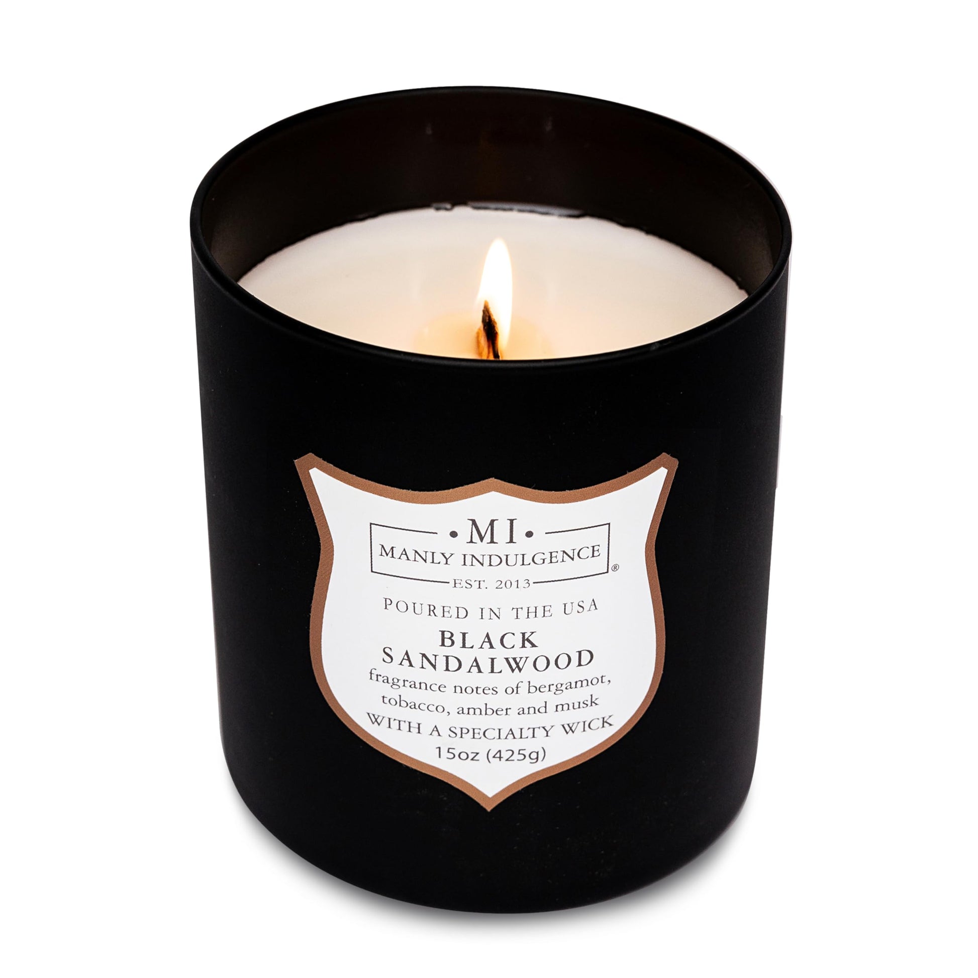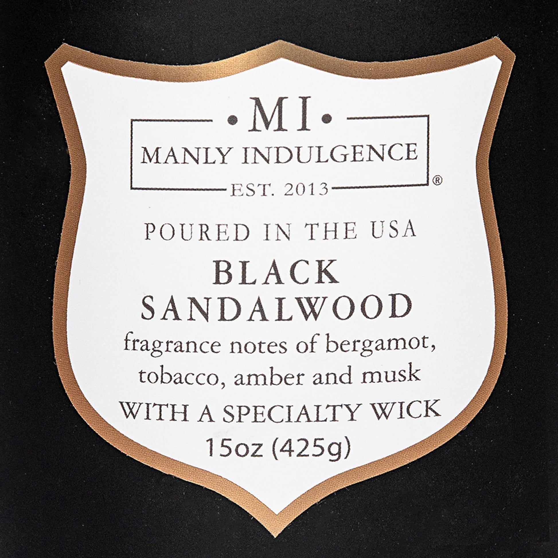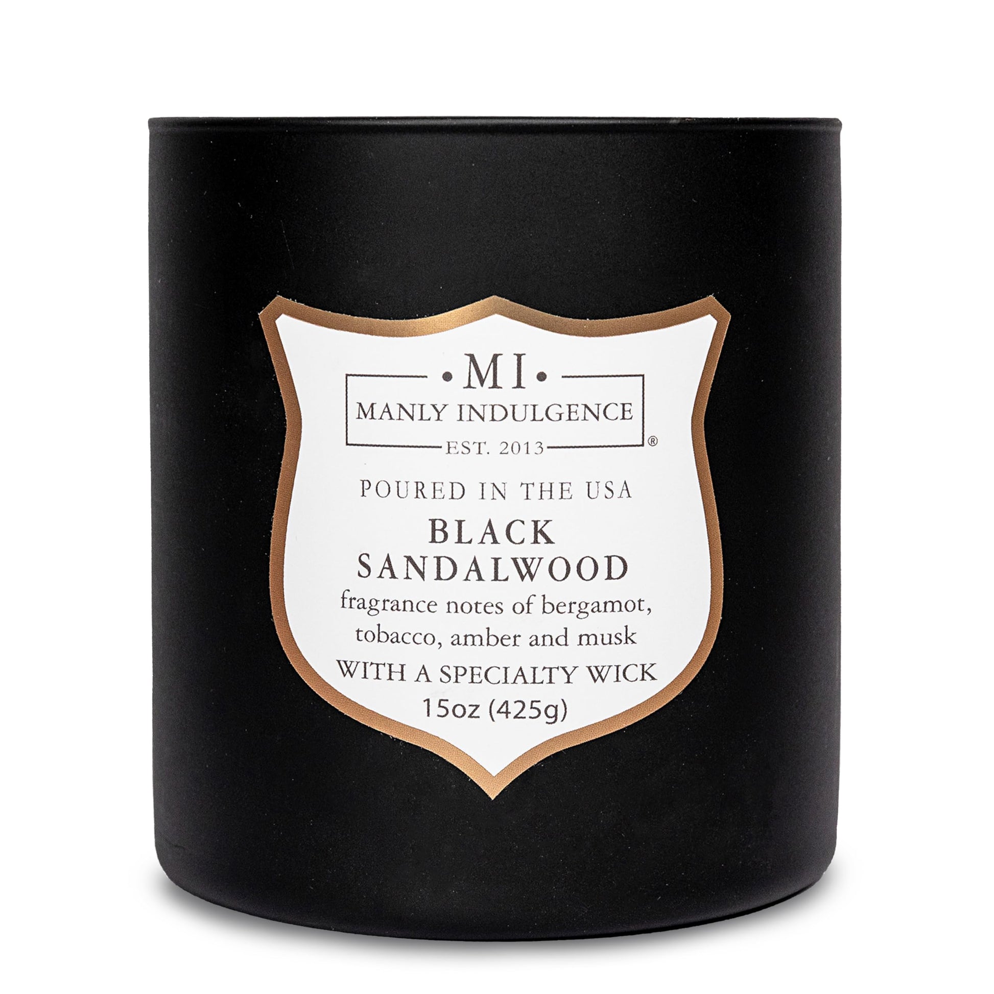 Manly Indulgence Black Sandalwood Scented Candle for Men 15 oz – Bergamot, Tobacco, Amber & Musk - Wood Wick - Up to 60 Hours Burn - Soy Blend Wax, USA Poured – Signature Collection