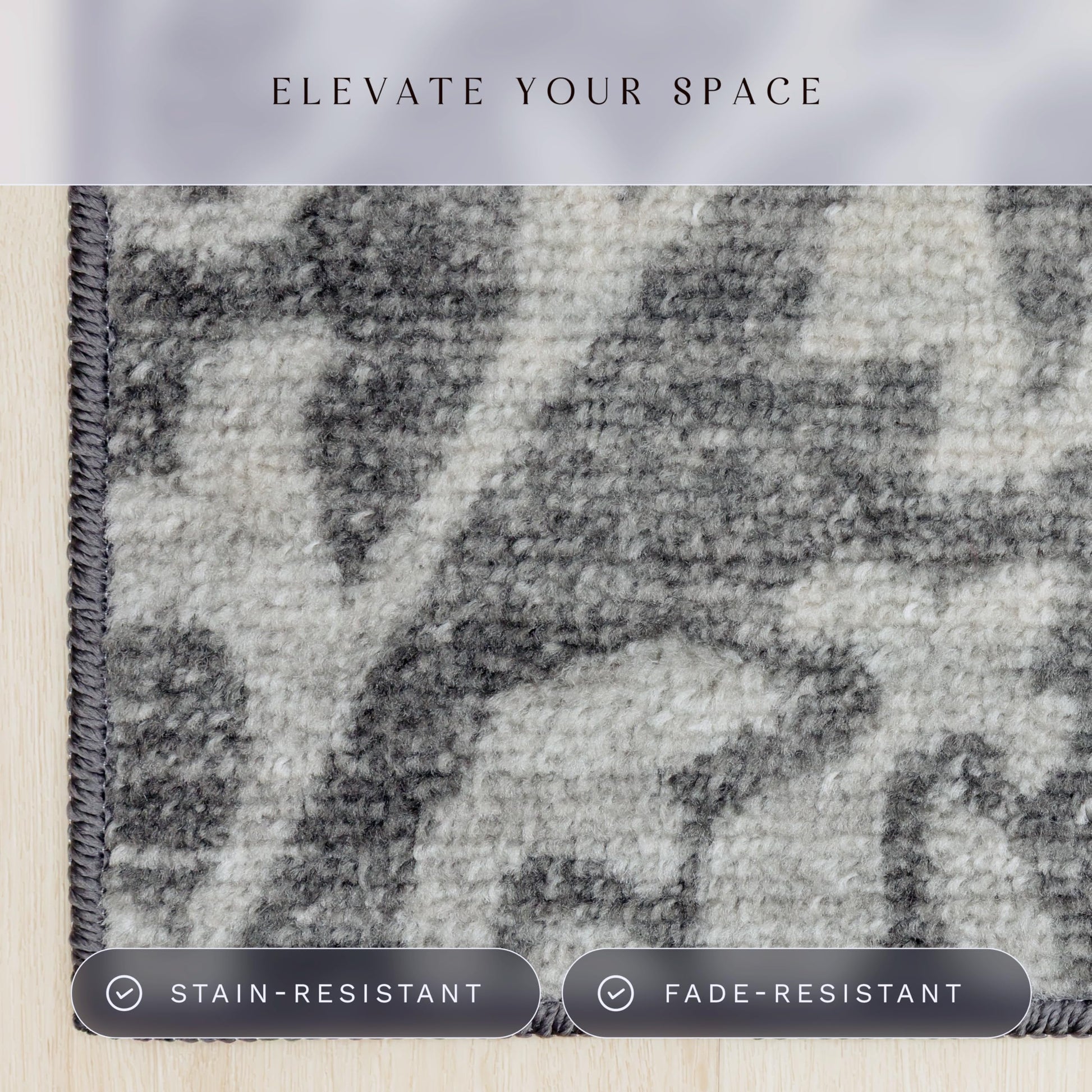 Maples Rugs Exeter Floral Area Rugs – Made in USA – Washable, Non Slip Indoor Carpet for Entryway, Foyer, Kitchen, and Bathroom, 30" x 46", Grey