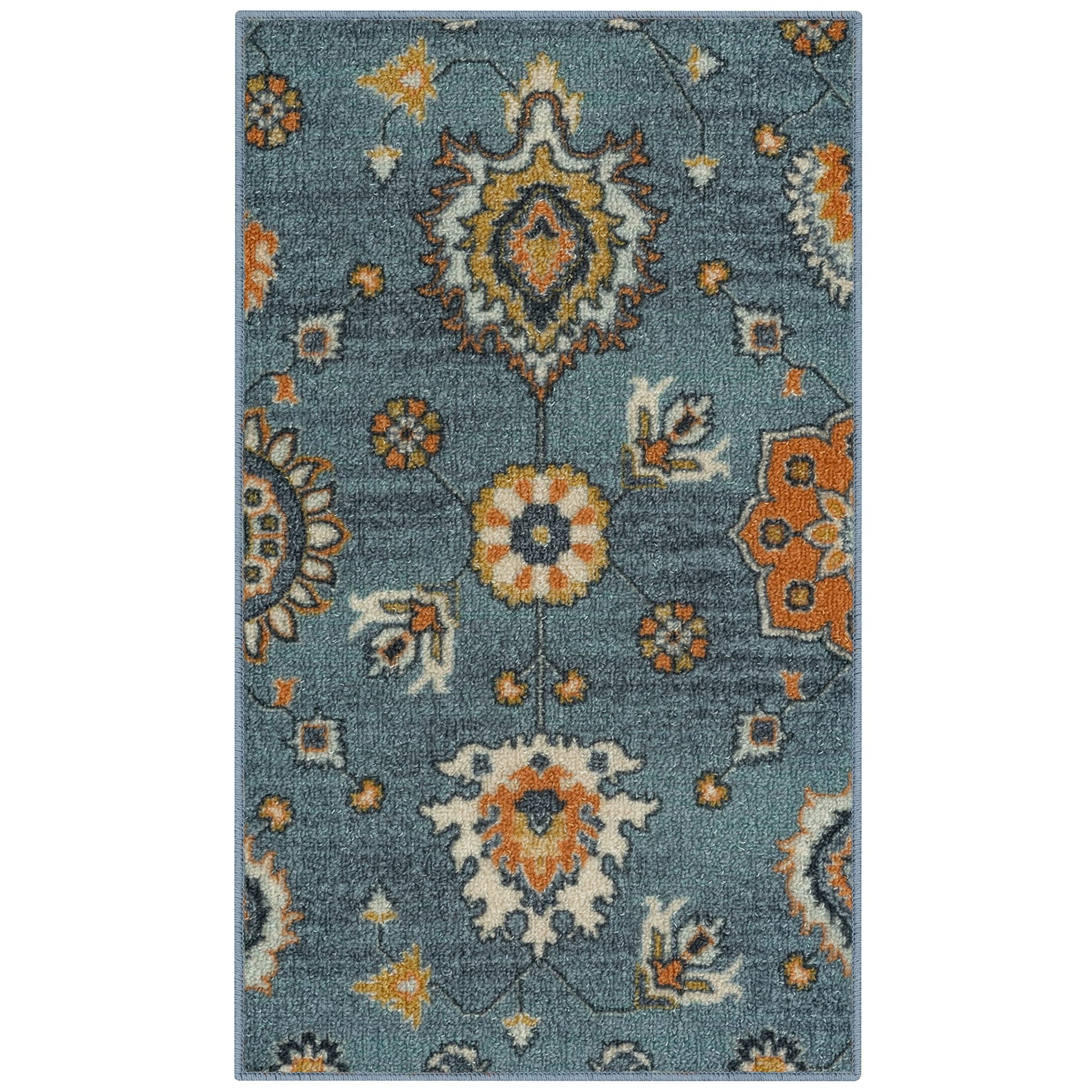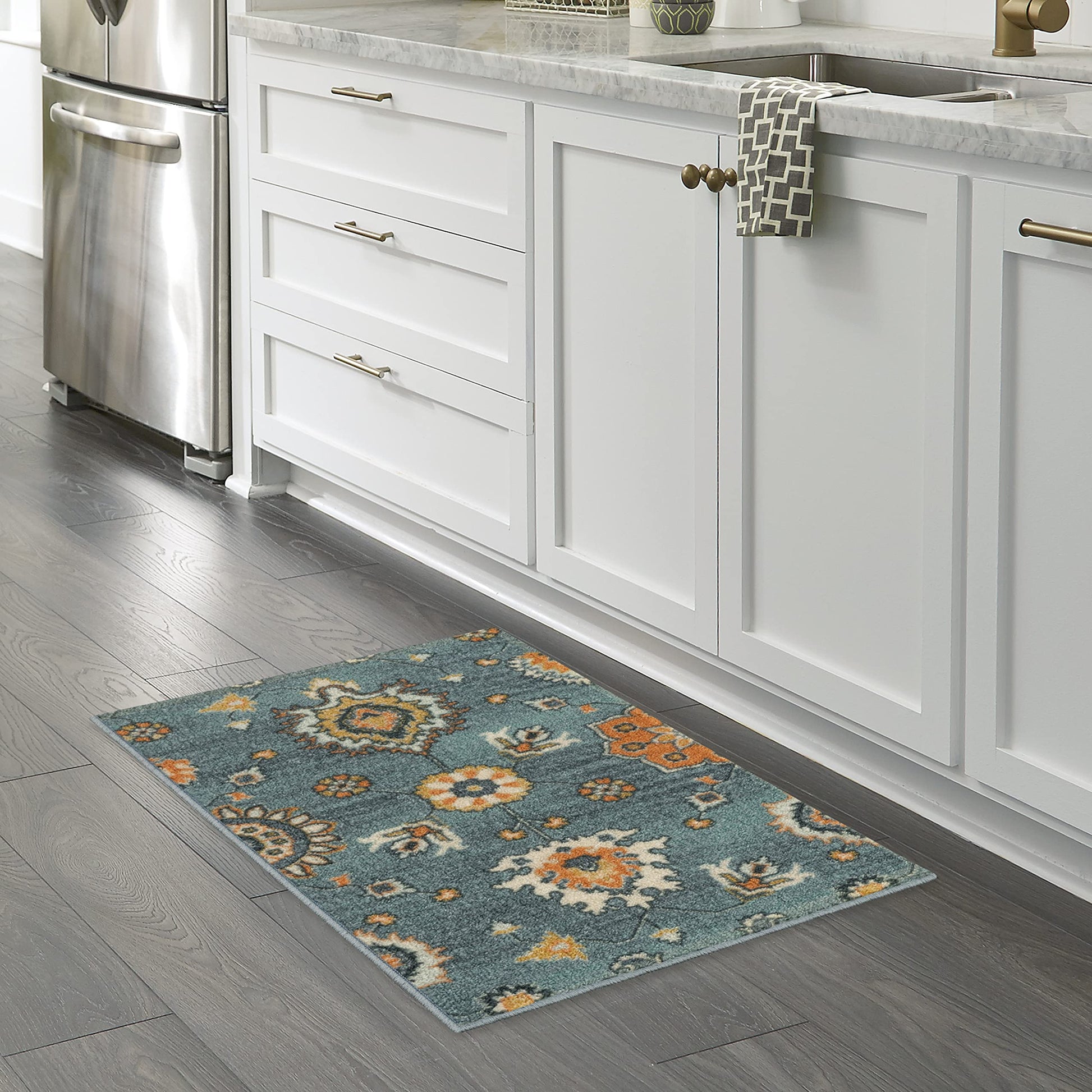 Maples Rugs Fleur Contemporary Motif Kitchen Rugs Non Skid Accent Area Carpet [Made in USA], Blue/Multi, 1'8" x 2'10"