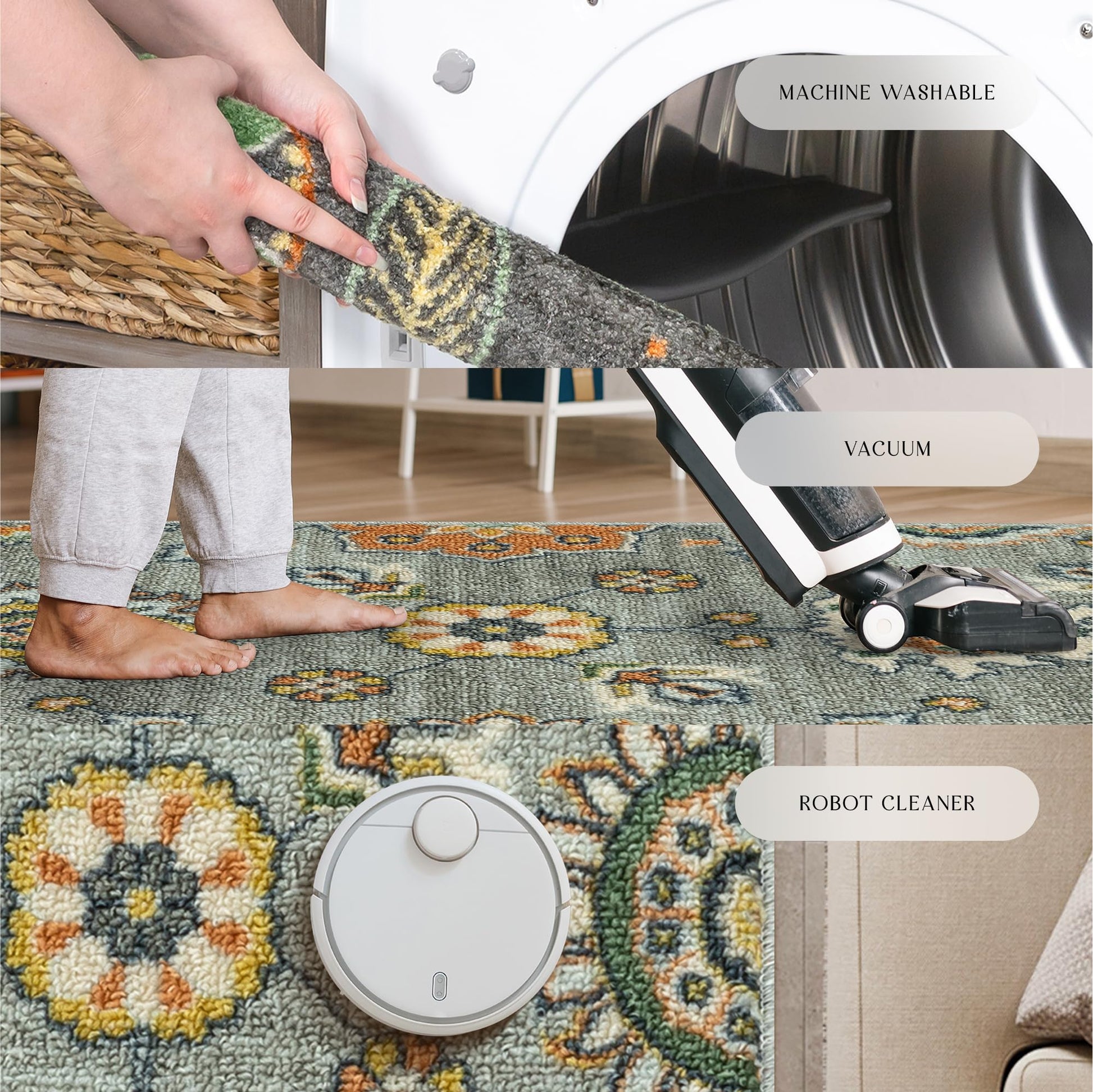 - Easy Care & Maintenance – Designed for hassle–free upkeep, machine washable for convenient cleaning and everyday freshness. Simply toss in the washing machine or spot clean as needed to maintain vibrant colors and plush feel. After tumble drying, allow the latex backing to relax by laying the rug flat before use for optimal performance.