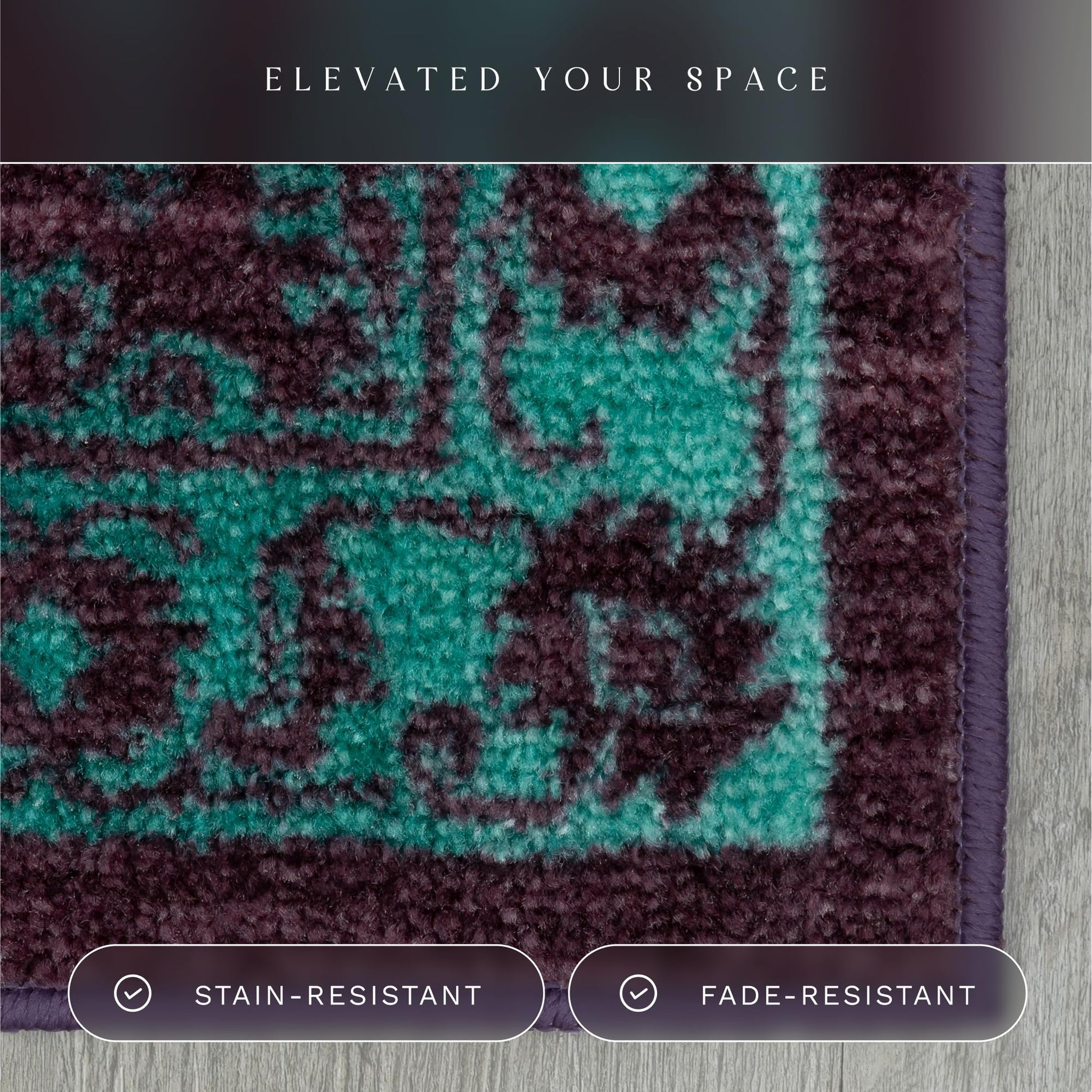 Maples Rugs Georgina Traditional Runner Rug – Made in USA – Washable, Non Slip Indoor Carpet for Hallway, Kitchen, and Laundry Room, 1'8 x 5', Wineberry/Teal