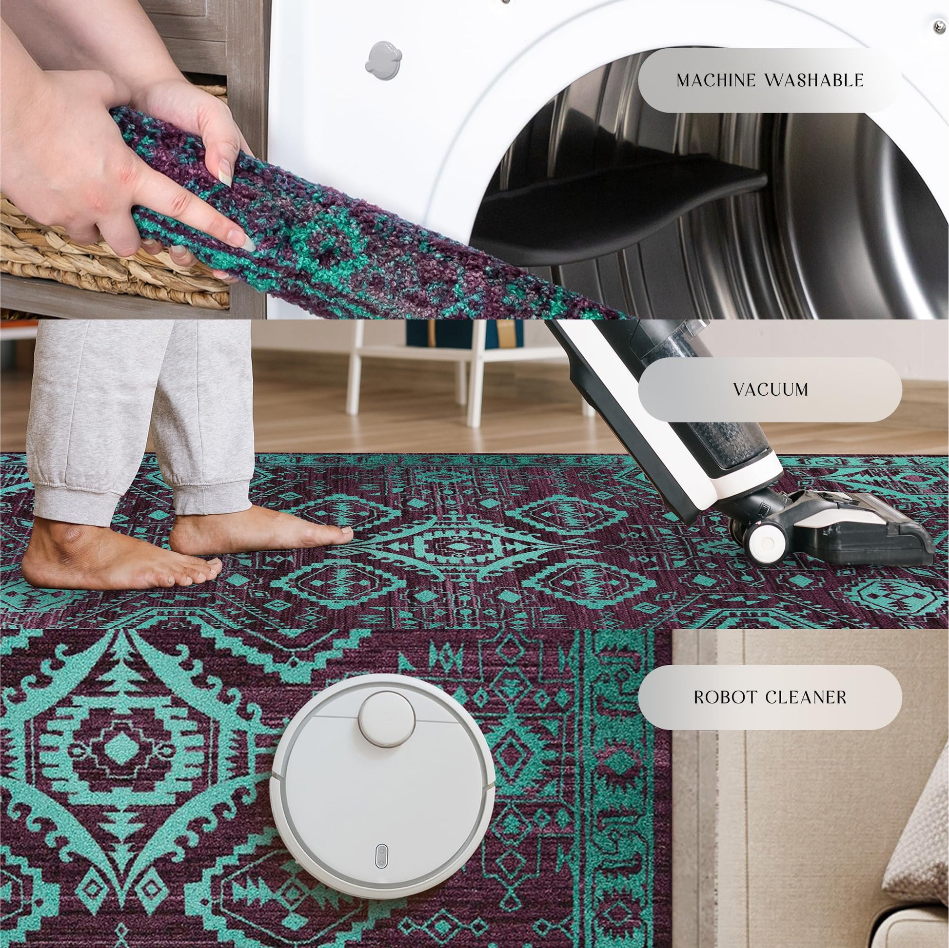 - Easy Care & Maintenance – Designed for hassle–free upkeep, machine washable for convenient cleaning and everyday freshness. Simply toss in the washing machine or spot clean as needed to maintain vibrant colors and plush feel. After tumble drying, allow the latex backing to relax by laying the rug flat before use for optimal performance.