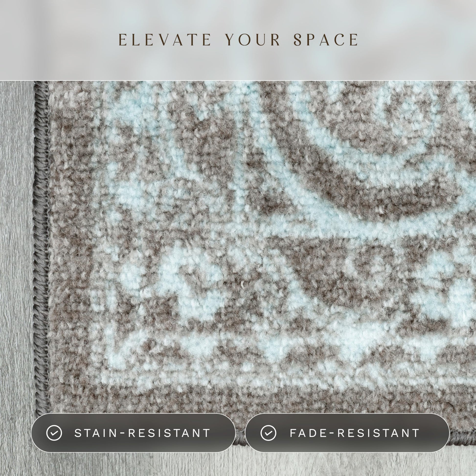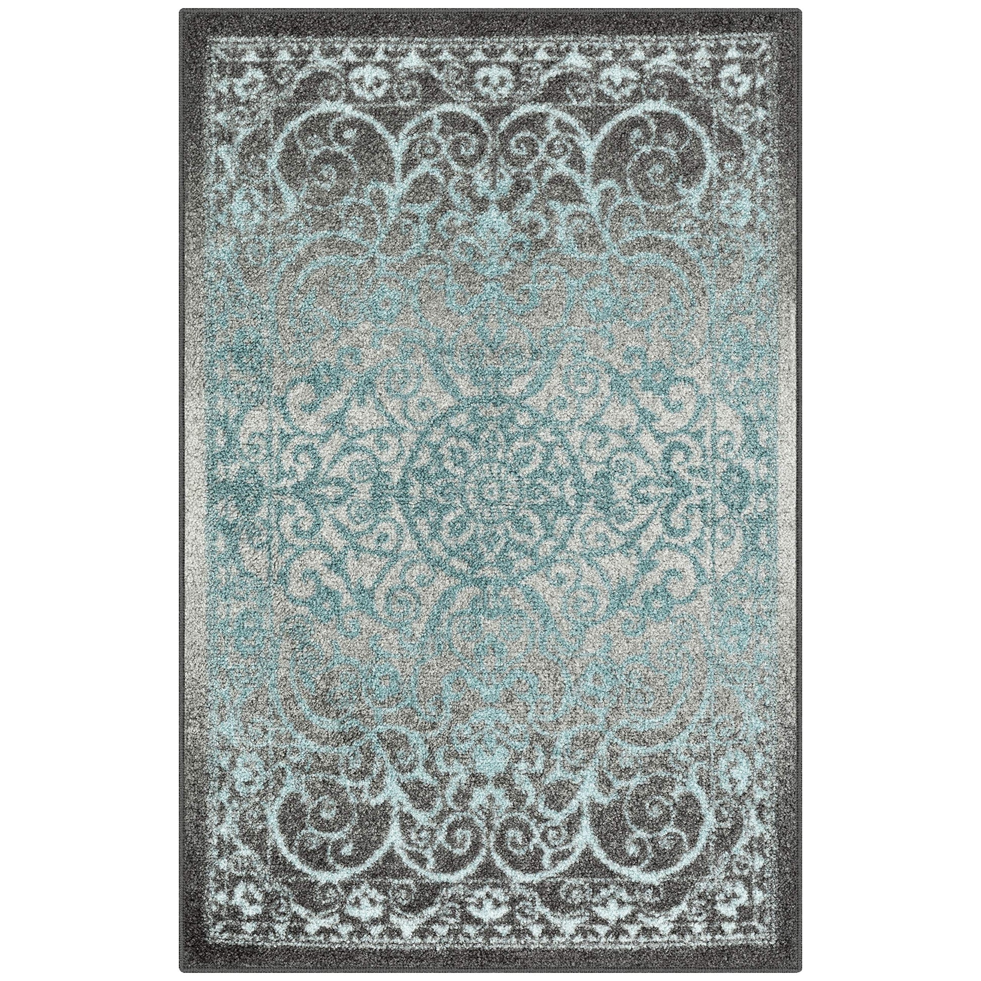 Maples Rugs Pelham Transitional Area Rugs - Made in USA - Washable, Non Slip, Indoor Carpet for Entryway, Foyer, Kitchen, and Bathroom, 1'8 x 2'10, Blue/Grey