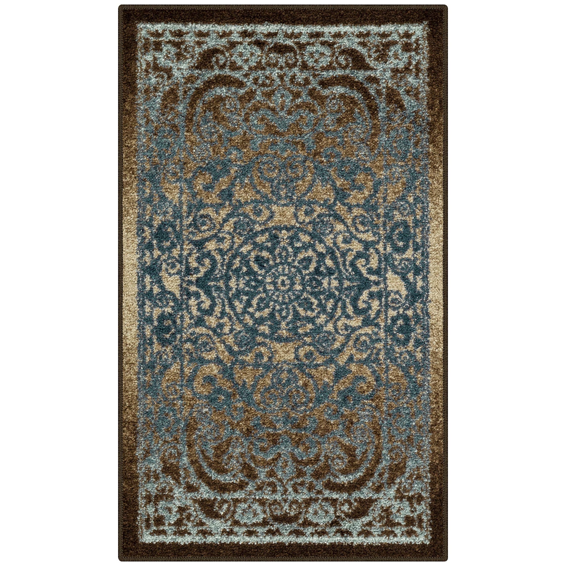 Maples Rugs Pelham Transitional Area Rugs - Made in USA - Washable, Non Slip, Indoor Carpet for Entryway, Foyer, Kitchen, and Bathroom, 1'8 x 2'10, Blue/Walnut