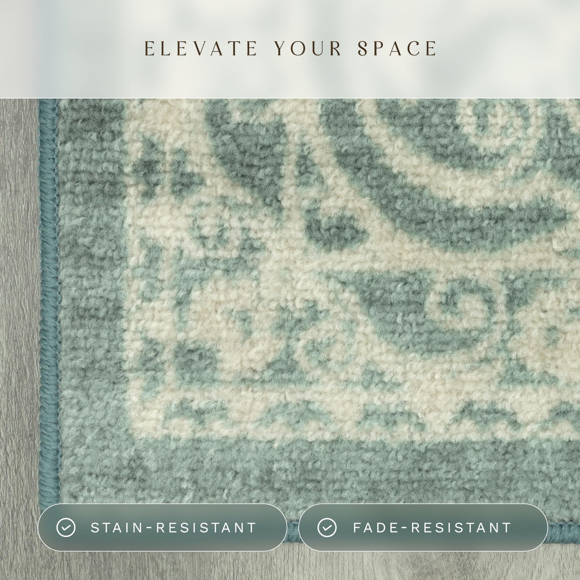 Maples Rugs Pelham Transitional Area Rugs - Made in USA - Washable, Non Slip, Indoor Carpet for Entryway, Foyer, Kitchen, and Bathroom, 1'8 x 2'10, Light Spa