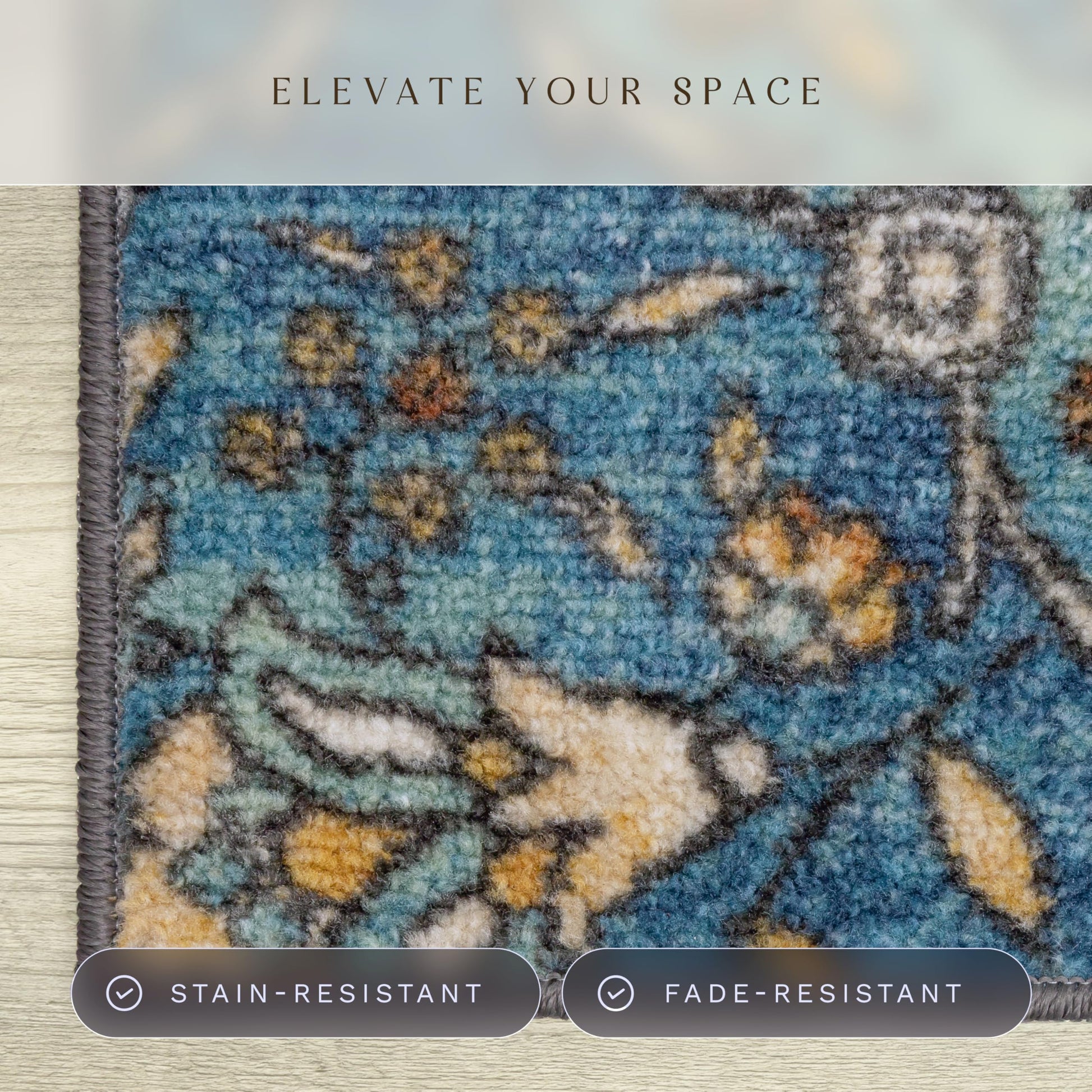 Maples Rugs Sutton Oriental Area Rugs – Made in USA – Washable, Non Slip Indoor Carpet for Entryway, Foyer, Kitchen, and Bathroom, 20" x 34", Blue/Orange