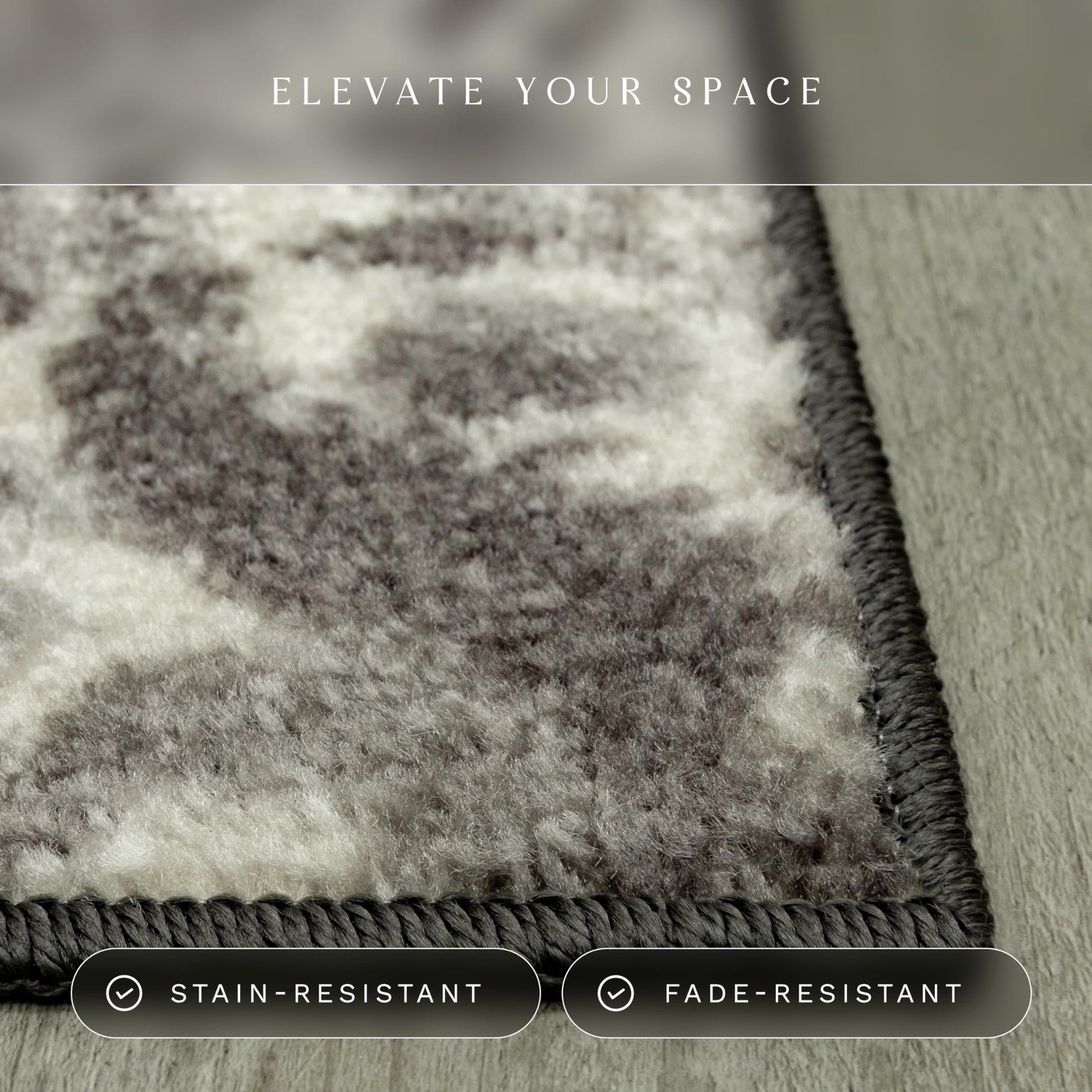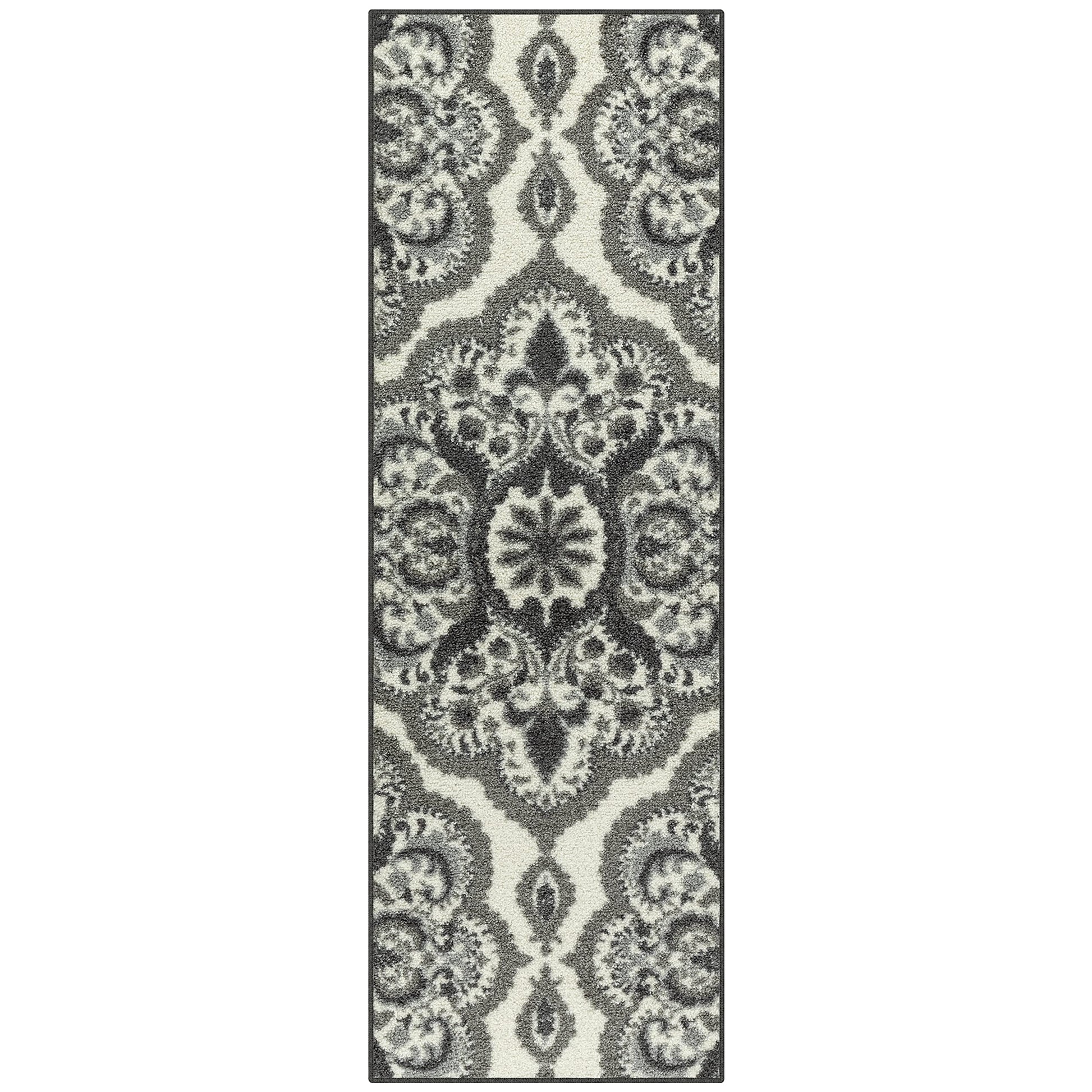 Maples Rugs Vivian Medallion Runner Rug - Made in USA - Washable, Non Slip, Indoor Carpet for Home, 1'8 x 5', Grey