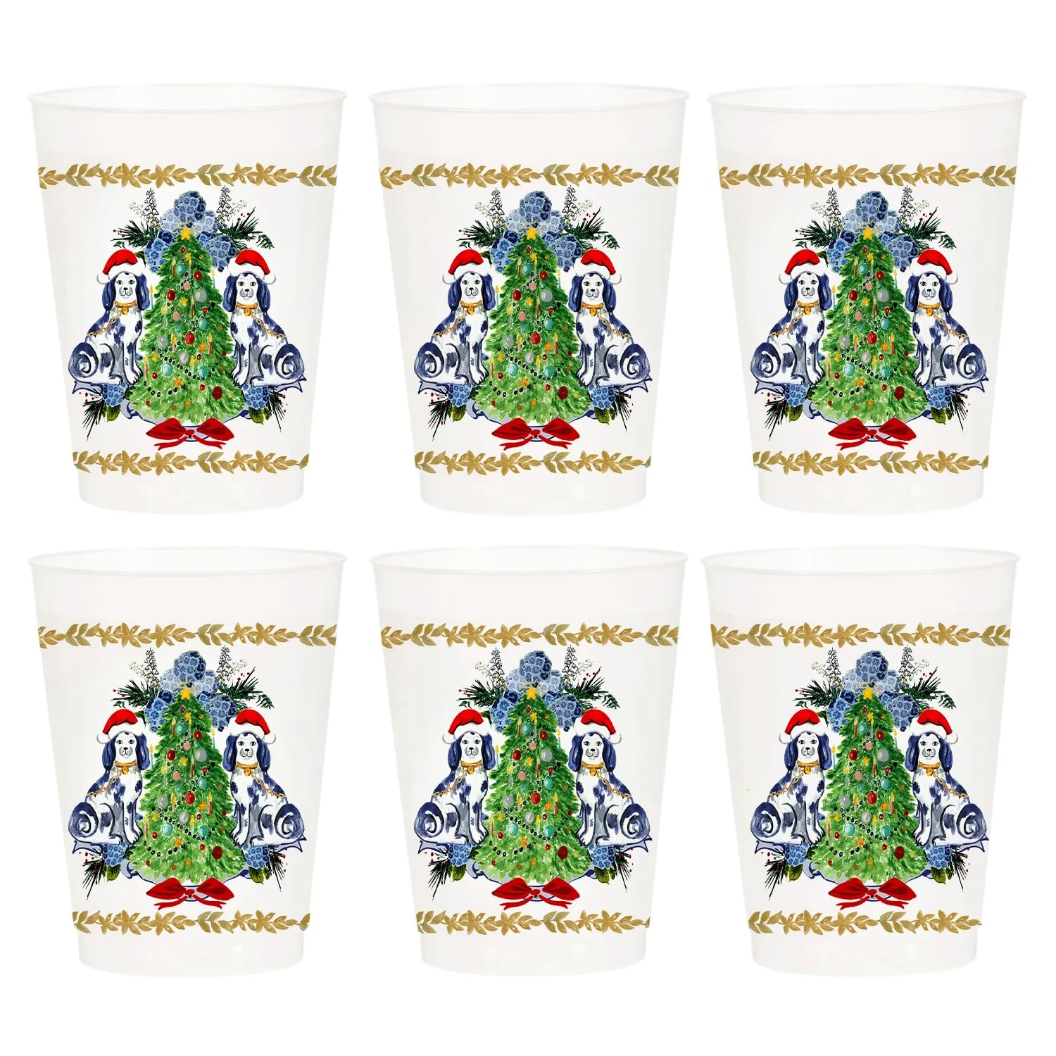 Details: Enjoy the Holiday season with our playful shatterproof frosted cups. Our Staffordshire Dogs ith Santa Hats and Christmas Tree cups features staffordshire dogs with Santa hats and a charming Christmas Tree in full-color. Host Christmas and Holiday parties and serve your drinks using our Shatterproof and BPA Free cups. These cups are perfect for any occasions but especially during Christmas! They will last for years. Dishwasher Safe on the Top Rack.