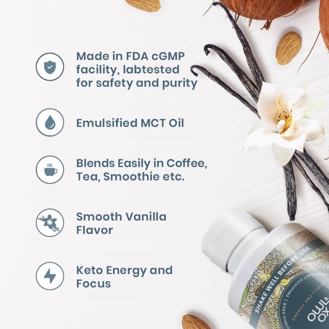 MCT Oil Blend – Vanilla | Keto-Friendly Liquid for Energy & Focus | Dairy-Free, Sugar-Free, Gluten-Free, Vegan | 30 Servings