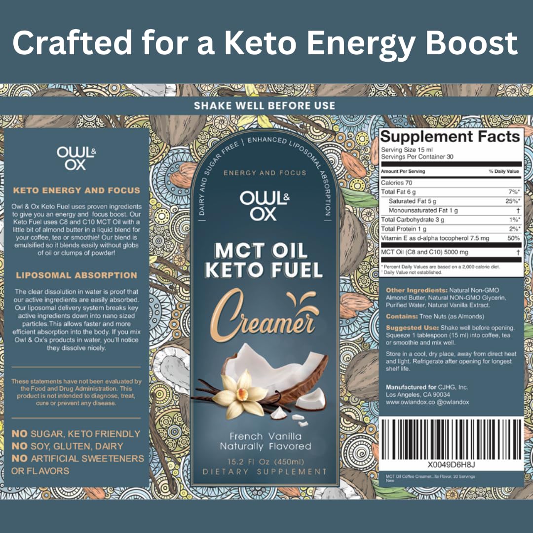 Details: Upgrade your coffee with our Vanilla MCT Oil Coffee Creamer – a clean, keto-friendly way to fuel your day with energy and focus. Made with Medium Chain Triglycerides (MCTs) from coconuts, this liquid creamer supports brain function, mental clarity, and sustained energy without the crash. Unlike messy powders, our emulsified liquid formula blends instantly into coffee, tea, or smoothies for a silky-smooth texture—no clumps, no oily residue. Crafted with natural vanilla and almond extract, it delivers a creamy, light flavor without sugar, dairy, or gluten. Perfect for ketogenic, low-carb, and plant-based lifestyles, our functional creamer is highly absorbable and made with purposeful ingredients designed to fuel both body and mind. Delicious taste, clean nutrition, and real functionality—every cup, every day.