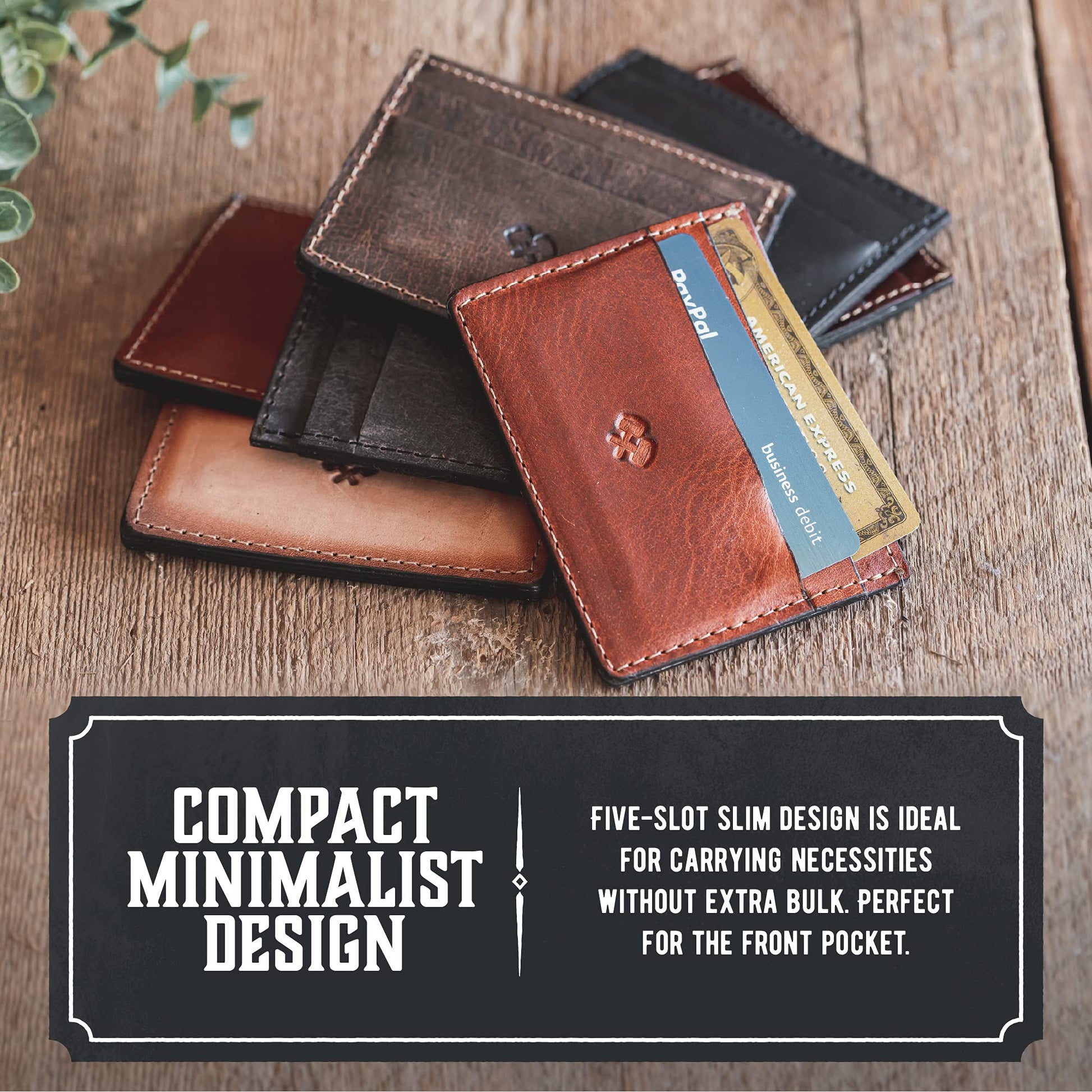 Men’s Slim Leather Wallet – Minimalist Front Pocket Wallet for Men, Full-Grain Leather, Made in USA
