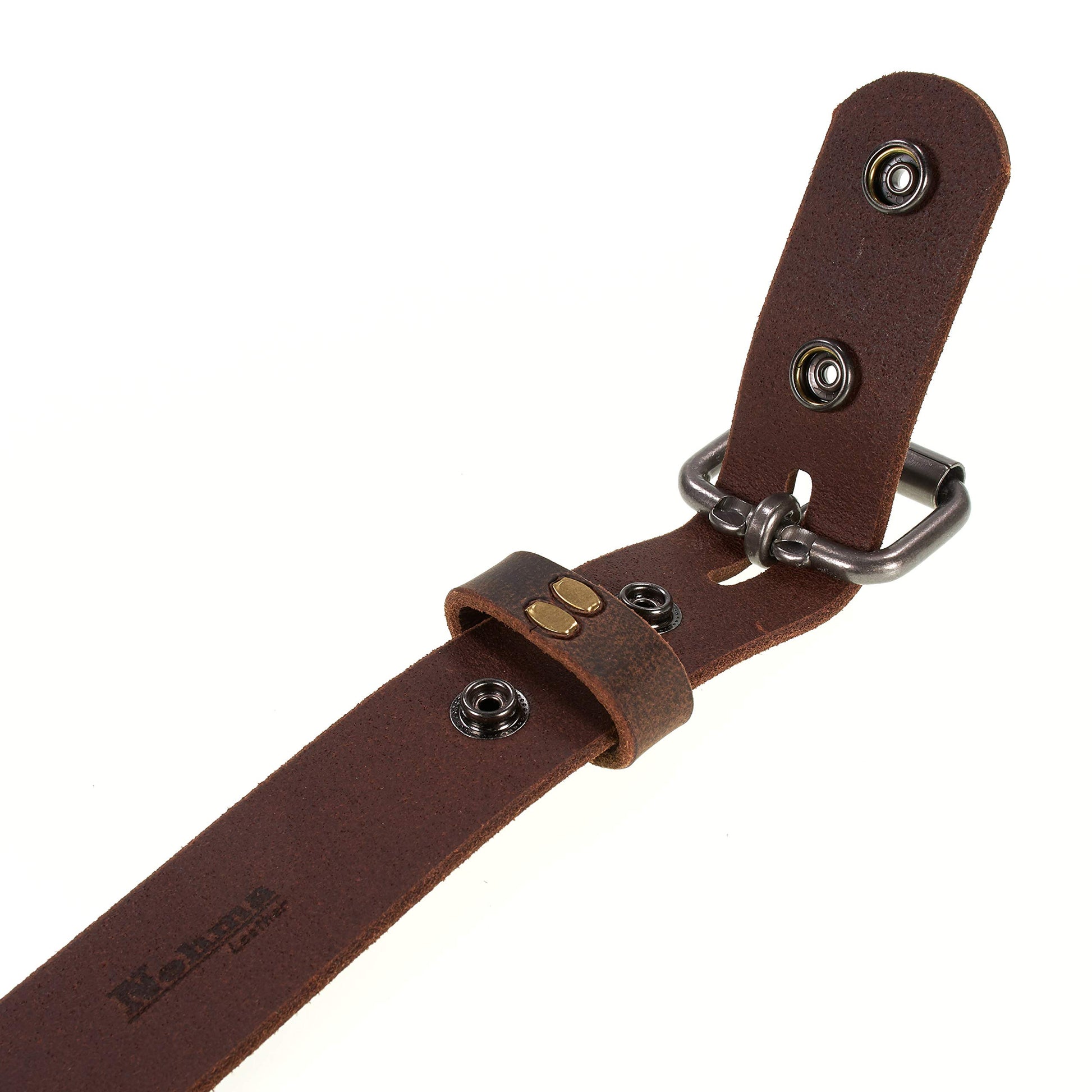 - Leather belt features a heavy-duty roller buckle securely attached with a durable snap, making it easy to customize your accessory with your own personal buckle. Enjoy the flexibility to switch things up as often as you like with minimal effort. Designed for convenience and durability, this belt is the perfect accessory for those who value functionality and style.