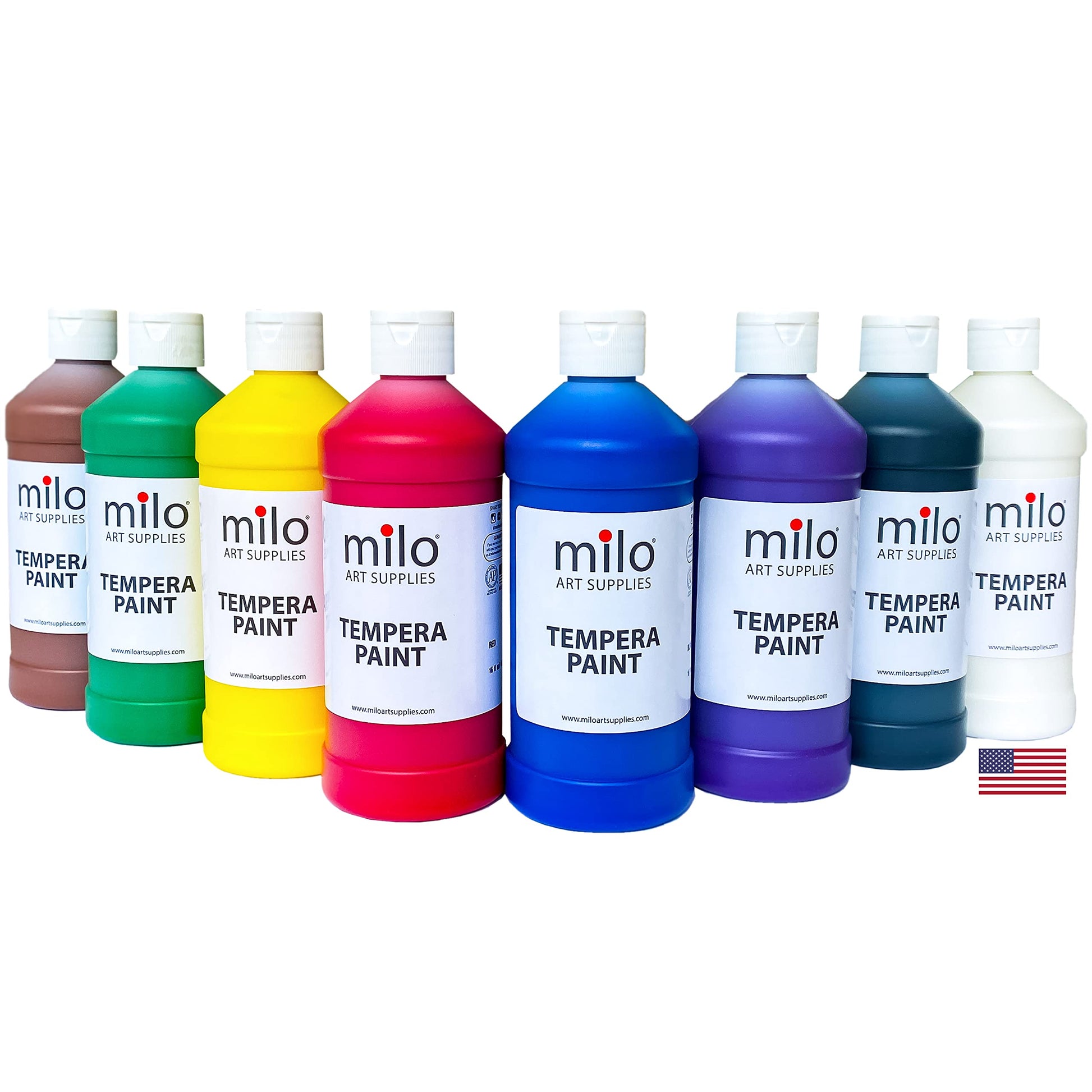 milo Tempera Paint Set of 8 Colors | 16 oz Bottles | Made in the USA | Washable and Non-Toxic Art & Craft Poster Primary Finger Paints for Artists, Kids, & Hobby Painters