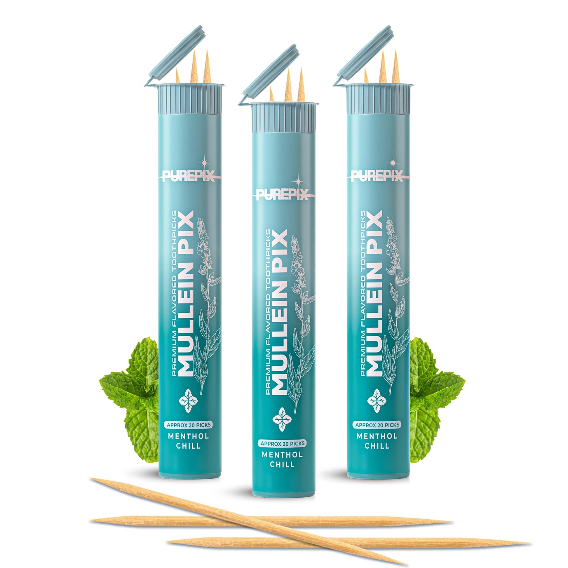 Mullein Pix, Extra Thick Boosting Flavored Toothpicks with Mullein Leaf – Natural Smoking Alternative – Lung Cleanse Support (Menthol Chill 3 Pack)