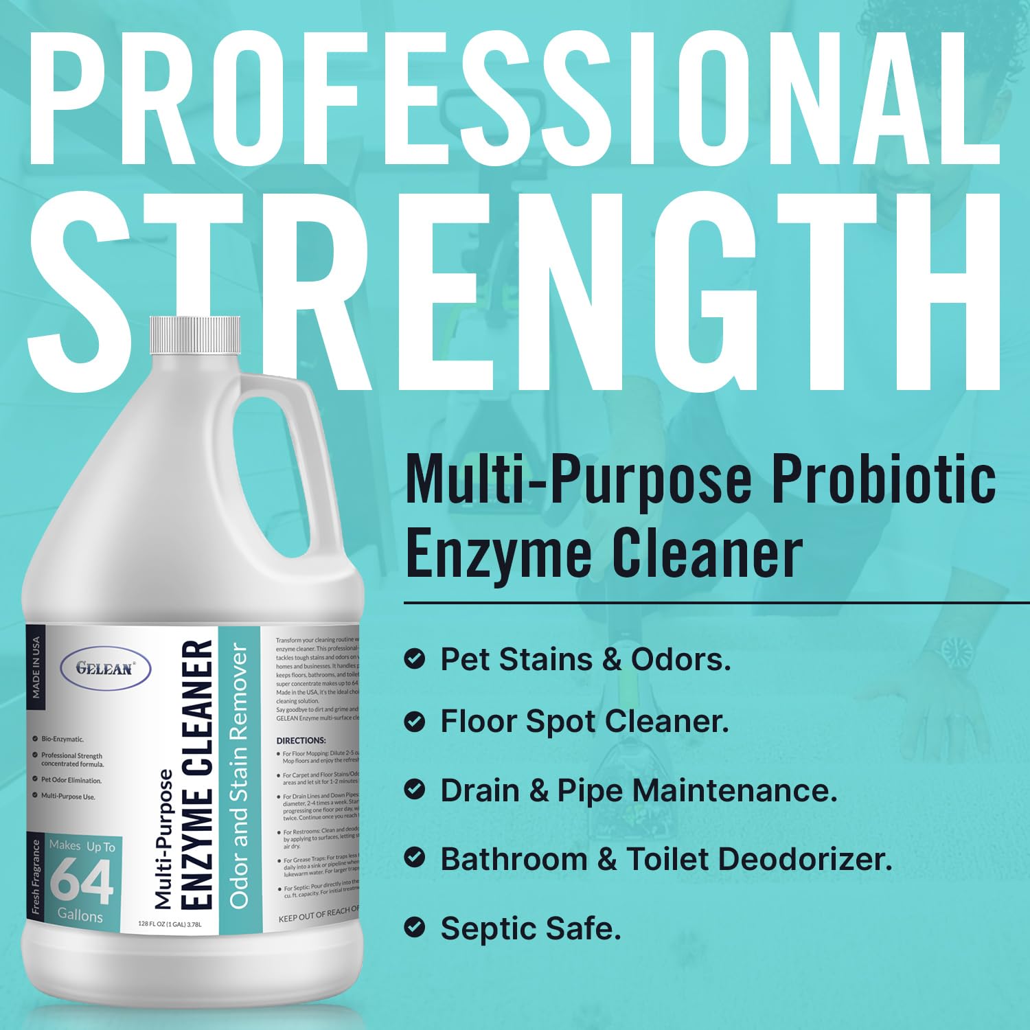 Multi-Purpose Probiotic Enzyme Cleaner, Made in USA - Pet Stain and Odor Remover - Concentrated - Professional & Home Strength Drains, Floors, Bathrooms, Toilets Trash Can, (1 gallon, Fresh fragrance)