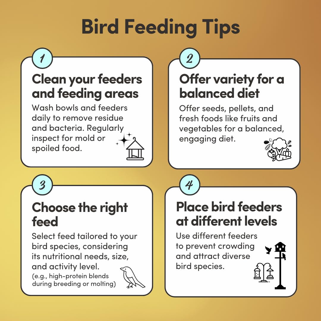 - Supports Feather Health & Immunity: Fortified with essential vitamins A, D3, E, and B12, plus omega-rich seeds to promote vibrant plumage, energy, and immune function.