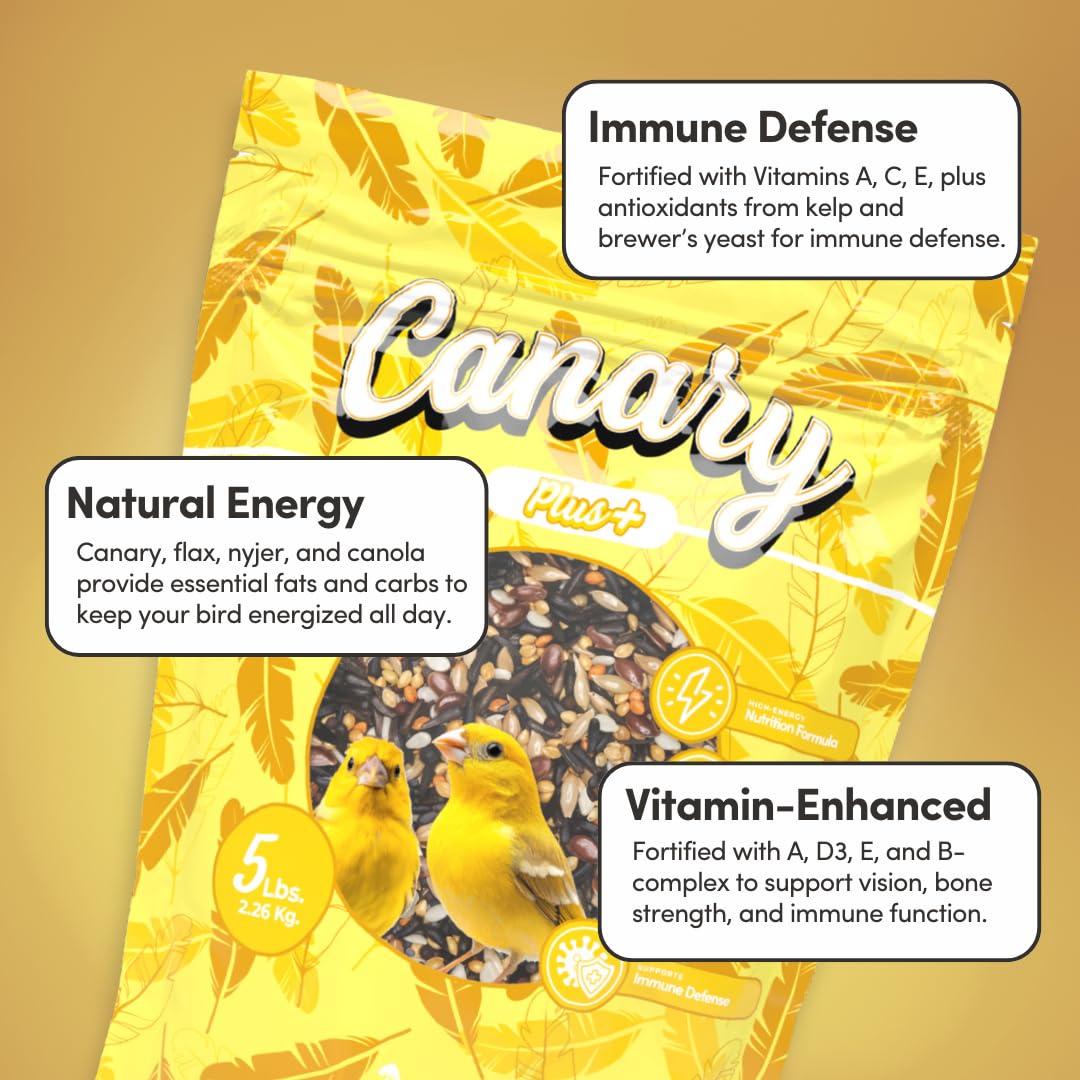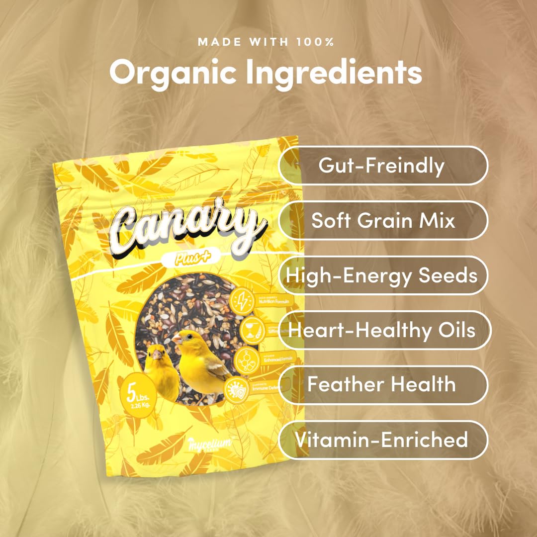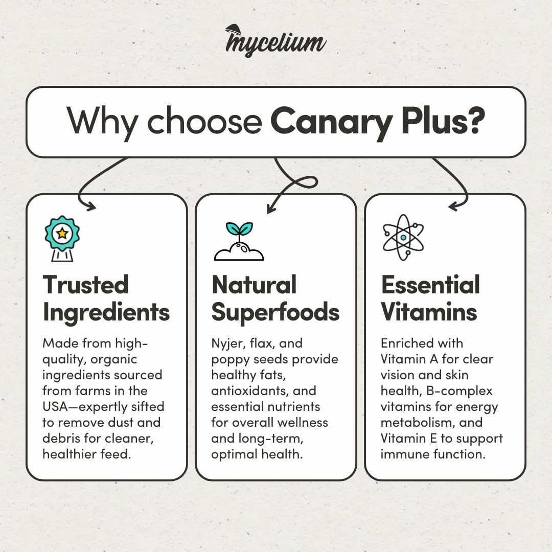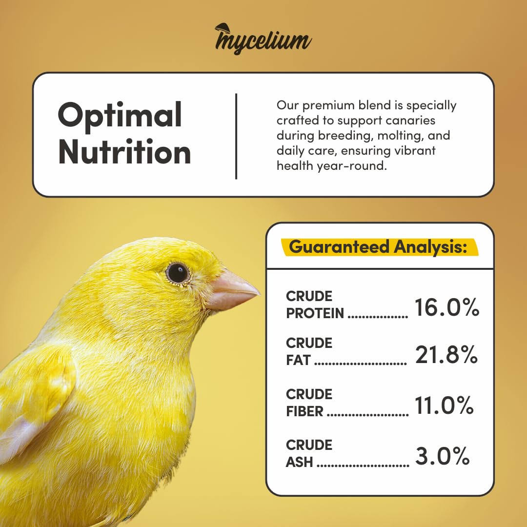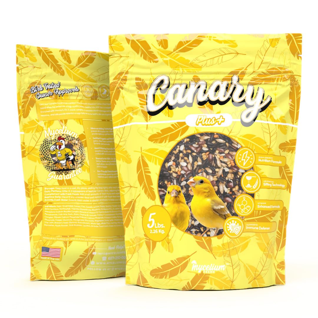 Mycelium Canary Plus Bird Seed (5 LB Bag) | High-Fat, Vitamin-Enriched Canary Food for Energy, Immune Defense & Feather Health | Organic Seed Blend for Small Pet Birds | Non-GMO & Made in USA