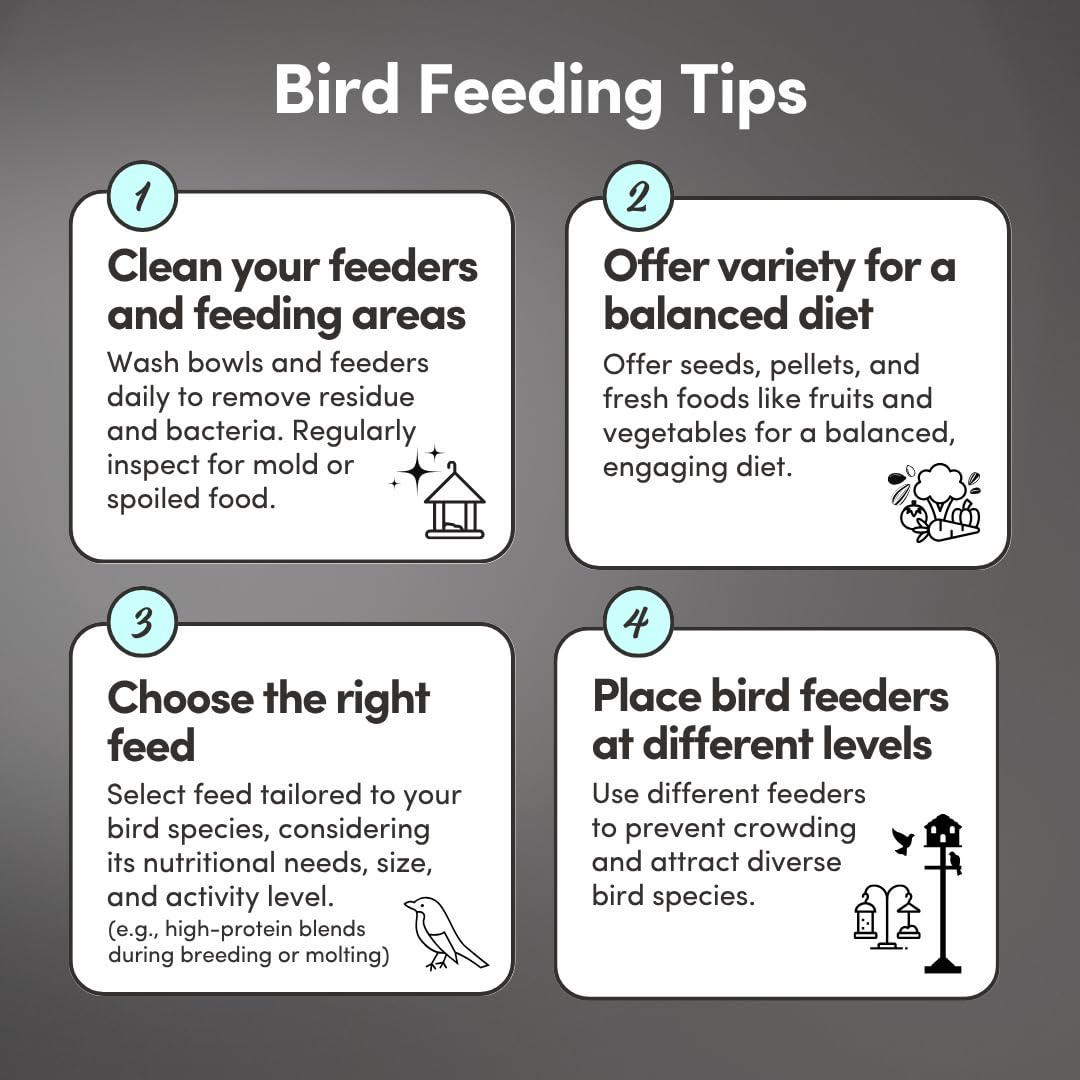 • All-Season Feeding Formula: With 12% protein and 2% fat, it’s designed for year-round use, supporting energy needs for feeding, molting, or active foraging.
