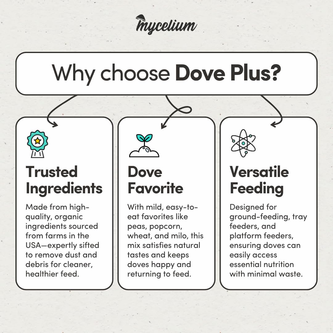 Mycelium Dove Plus Wild Bird Food (5 LB Bag) | Premium Bird Seed Mix for Doves, Pigeons & Ground-Feeding Birds | Supports Healthy Digestion | Organic, Non-GMO & Made in USA