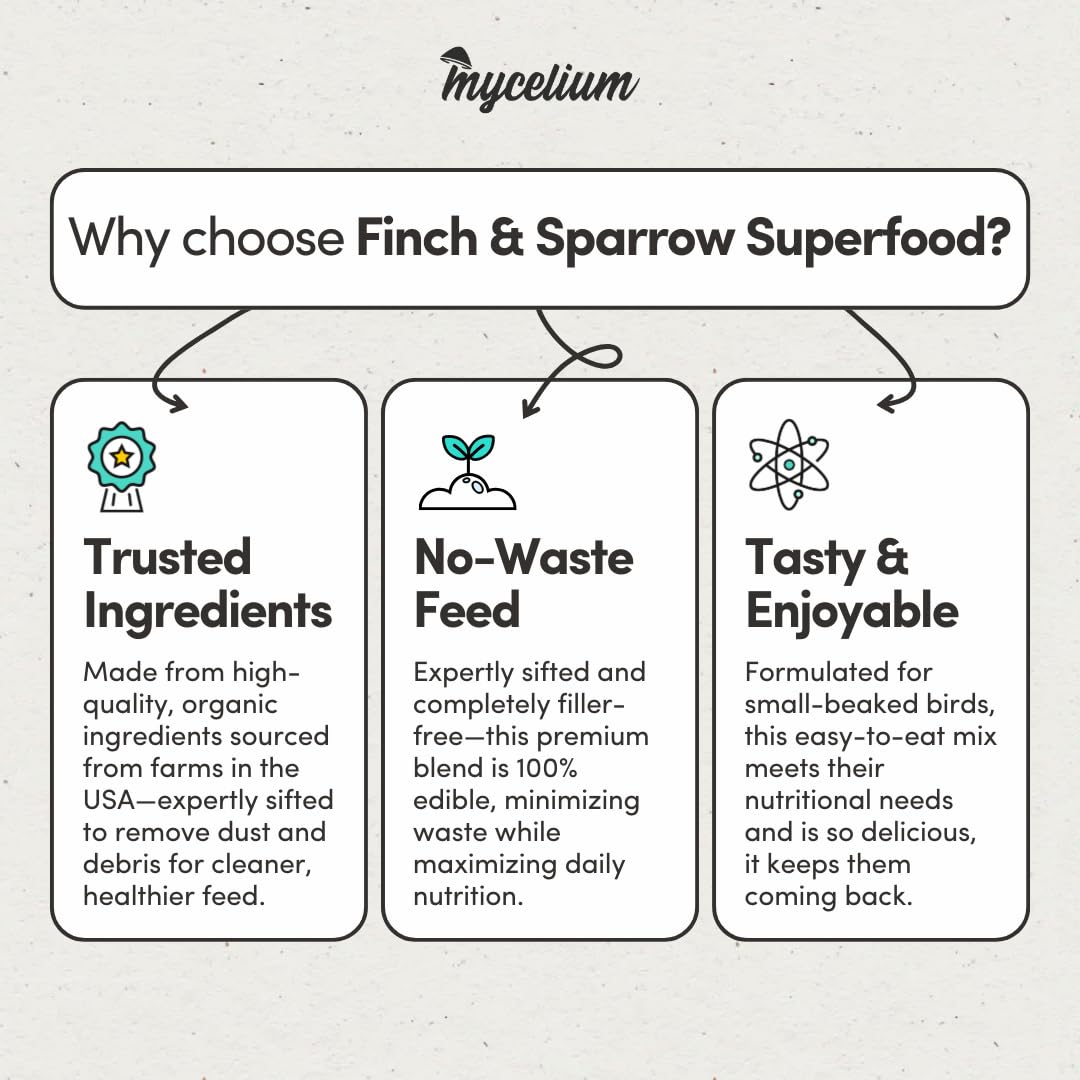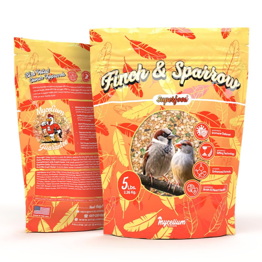 Mycelium Finch & Sparrow Superfood (5 LBS) | Organic Bird Food for Small Birds | Vitamin-Enhanced for Immunity, Brain & Heart Support | Non-GMO, Clean Ingredients, Made in USA