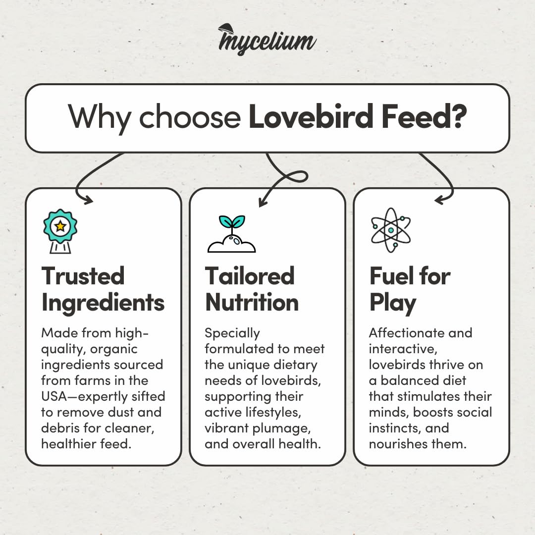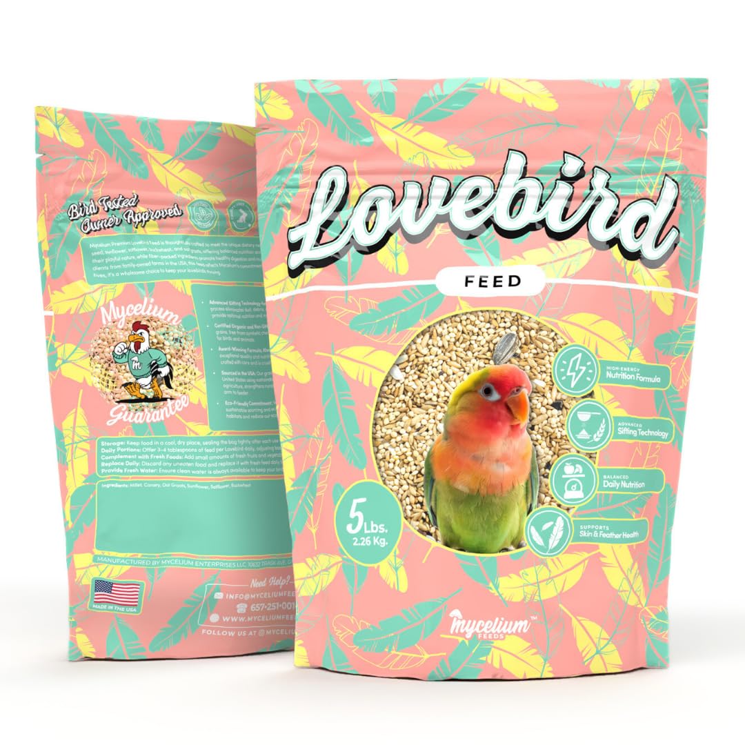 Mycelium Lovebird Feed (5 LB Bag) | Organic, Clean Seed Blend for Lovebirds & Small Parrots | Supports Skin & Feather Health | Non‑GMO, Shell-Free Nutrition | USA Made