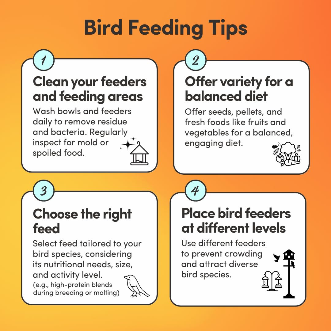 - Premium Ingredients, Clean Nutrition: Made with non-GMO, organic seeds and botanicals—free from fillers, preservatives, and synthetic dyes. Expertly sifted for reduced dust and cleaner feeding.