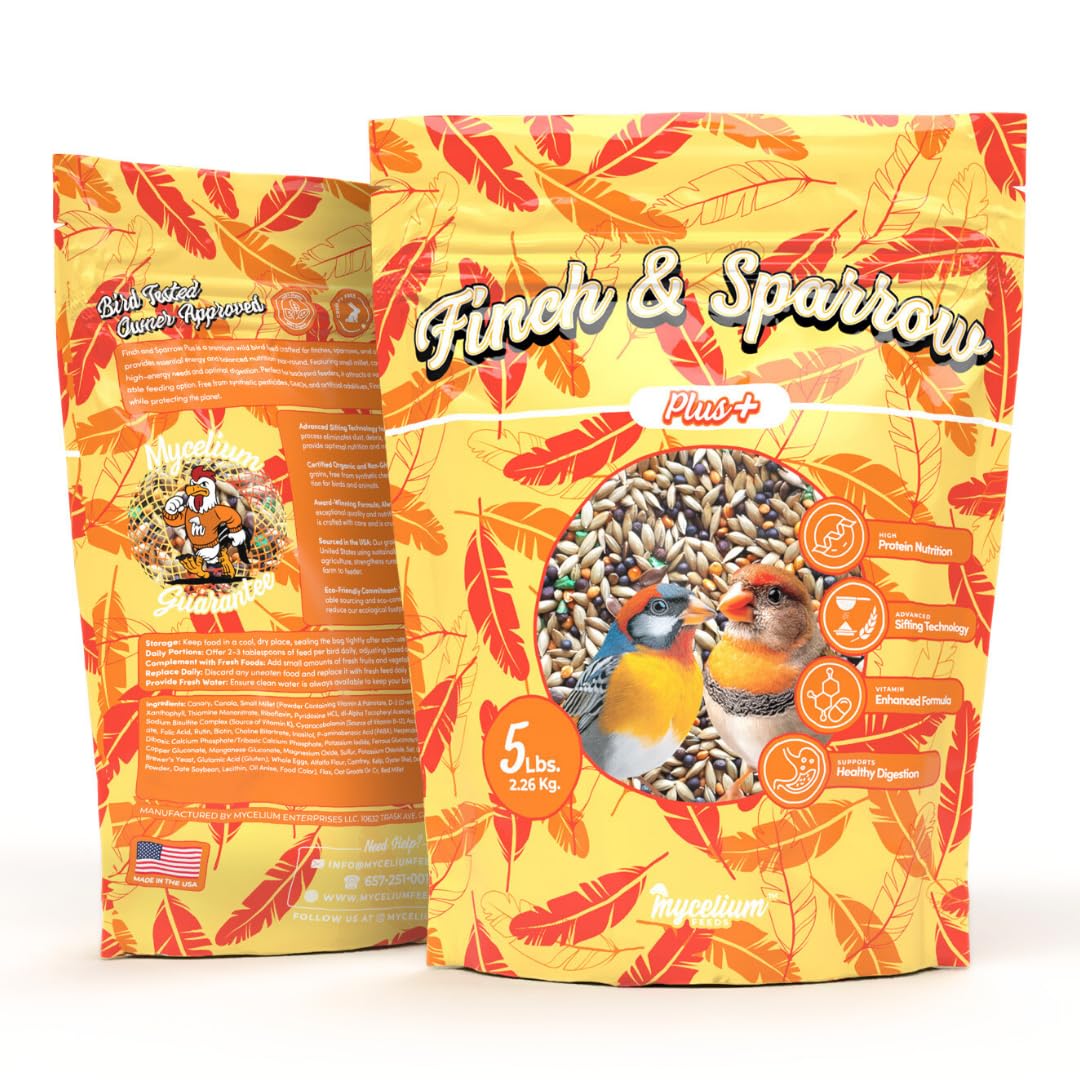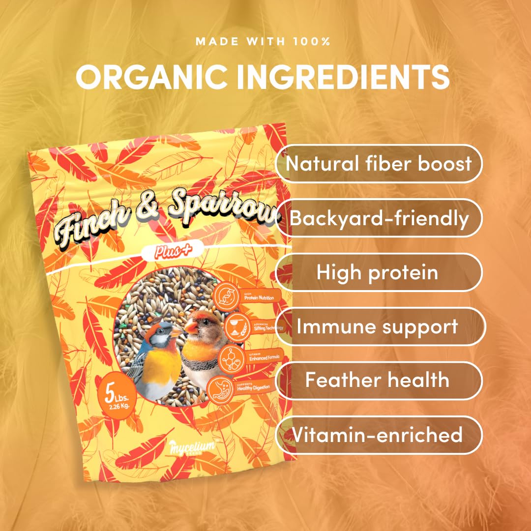 Mycelium Organic Finch & Sparrow Plus Feed (5 LB Bag) | High-Protein, Vitamin-Enriched Wild Bird Seed for Finches & Sparrows | Easy to Digest Seeds, Filler-Free | Non-GMO, Made in USA