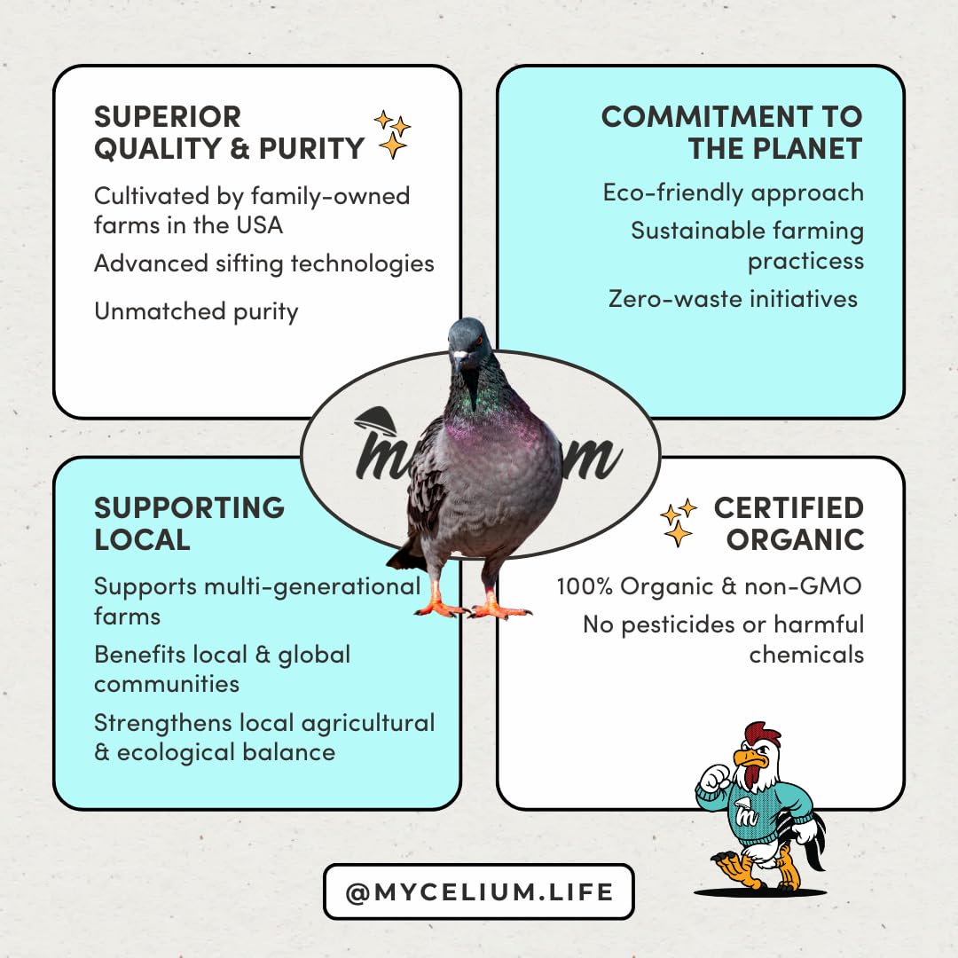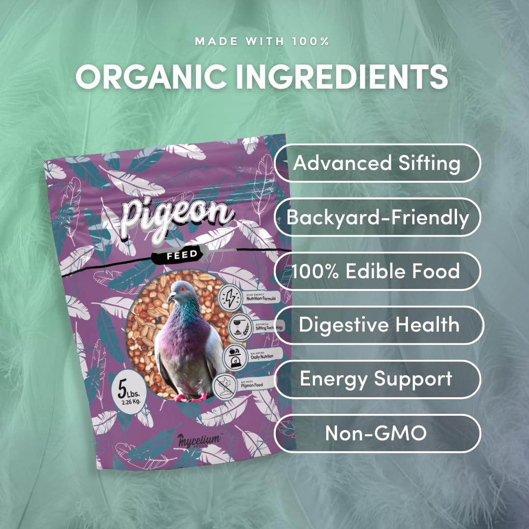 Mycelium Organic Pigeon Feed (5 LB Bag) | Complete Wild Bird Food for Energy & Daily Nutrition | Natural Seed Blend for Ground Feeders | Non-GMO, No Fillers or Additives, Made in USA