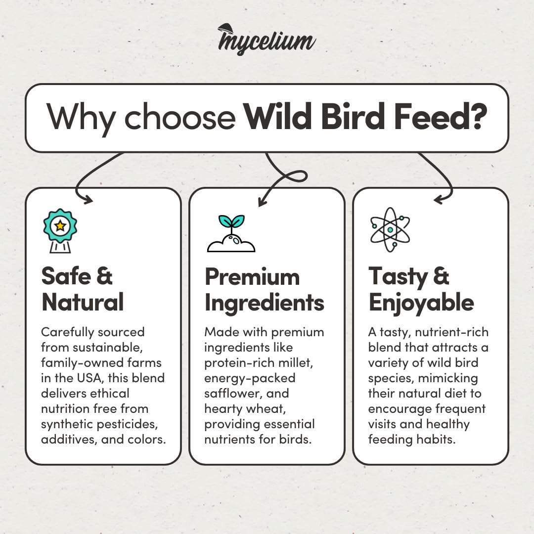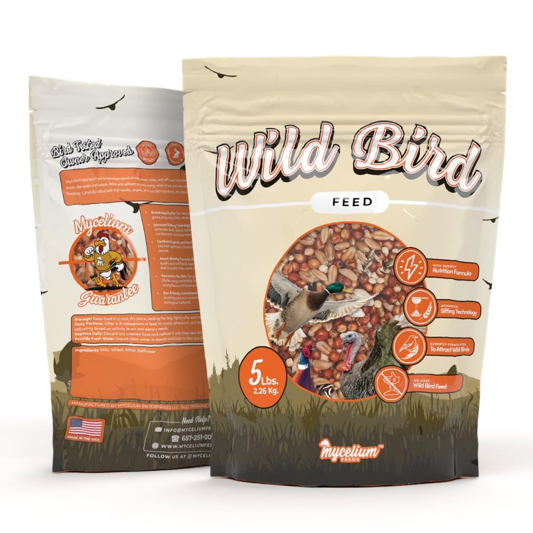 Mycelium Organic Wild Bird Feed (5 LB Bag) | Balanced Wild Bird Seed Mix for Turkeys, Pheasants, Quails & Cardinals | High-Energy Nutrition | Sifted, Non-GMO, Made in USA