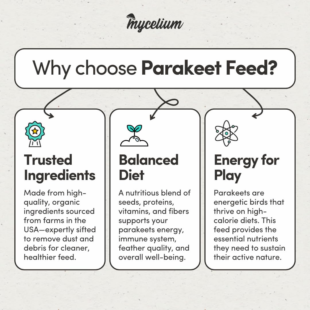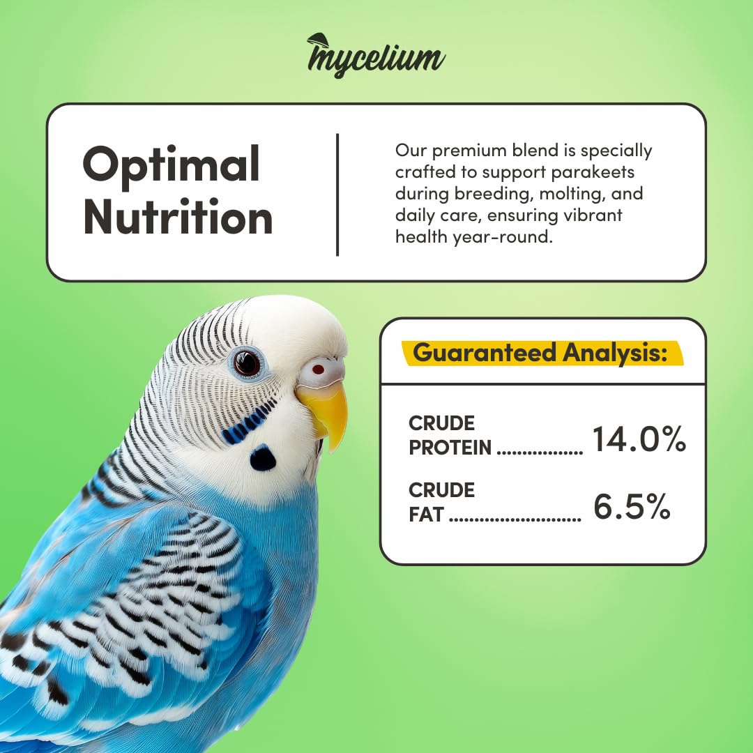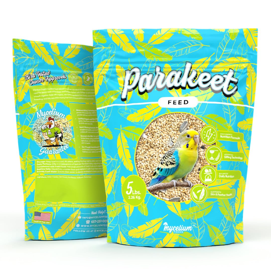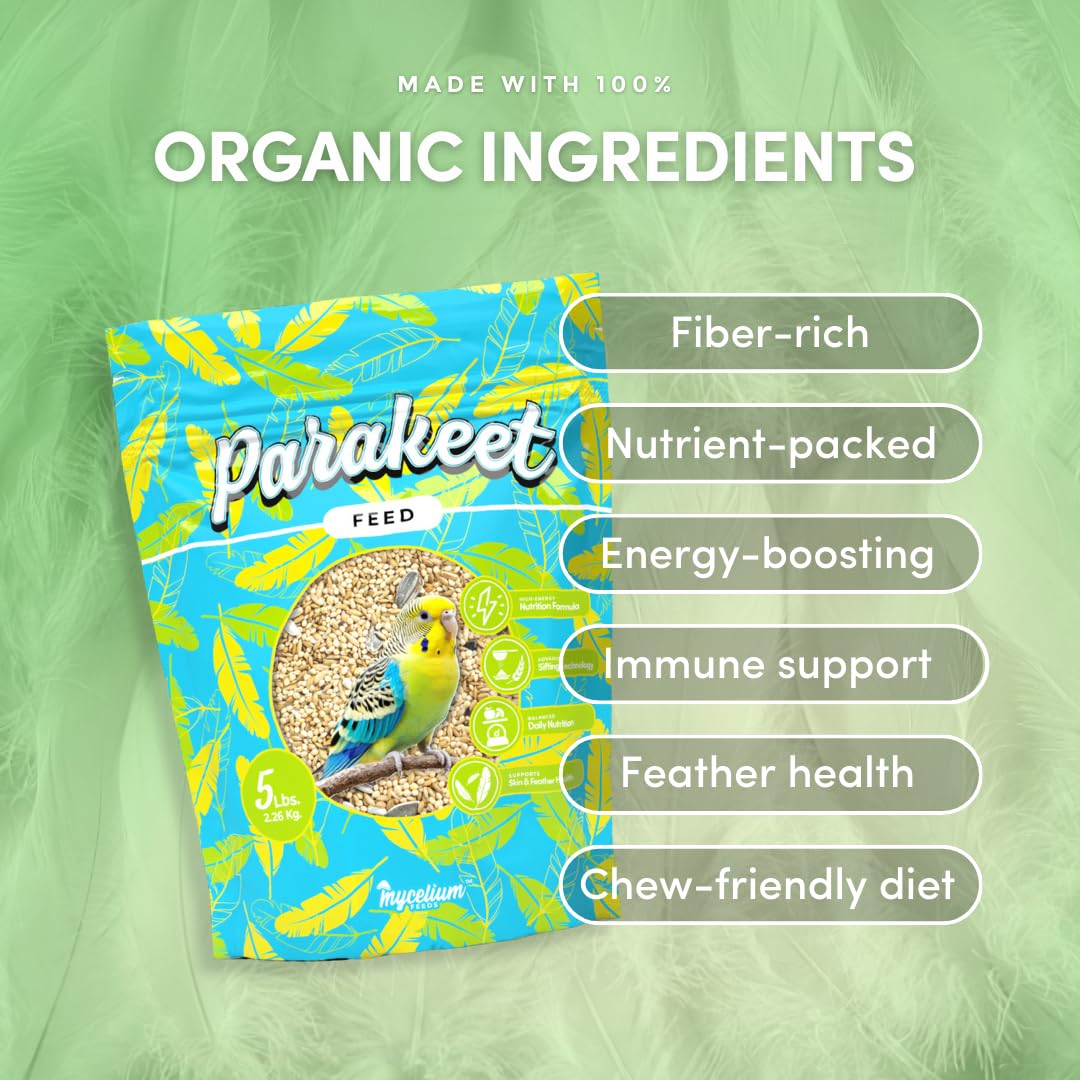 Mycelium Parakeet Feed (5 LB Bag) | Organic Bird Food for Parakeets, Budgies & Small Pet Birds | Supports Skin & Feather Health | Complete, Nutritious Diet | Dust-Free, Non-GMO, Made in USA
