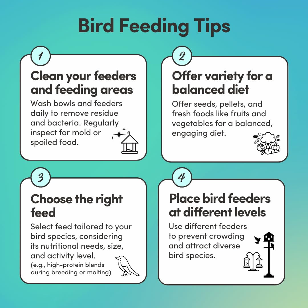 - Promotes Natural Foraging & Enrichment: Thoughtfully varied in shape and texture to encourage instinctual pecking, sorting, and foraging behaviors that keep birds engaged and mentally stimulated.