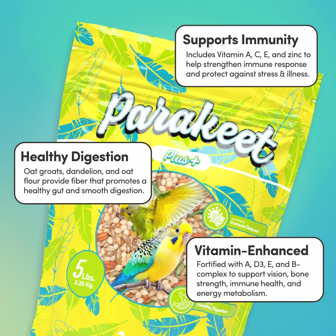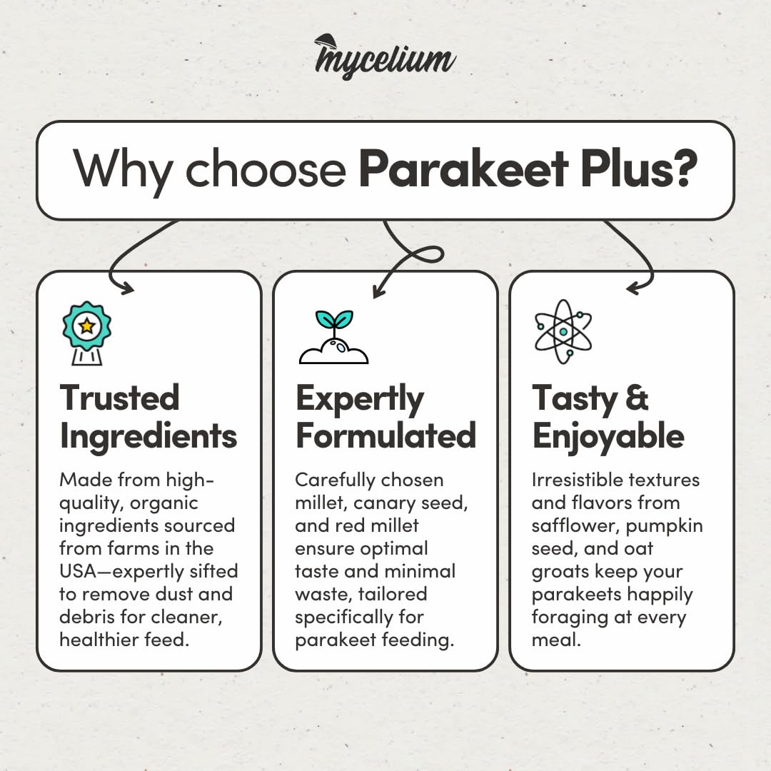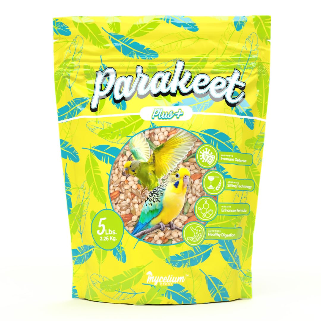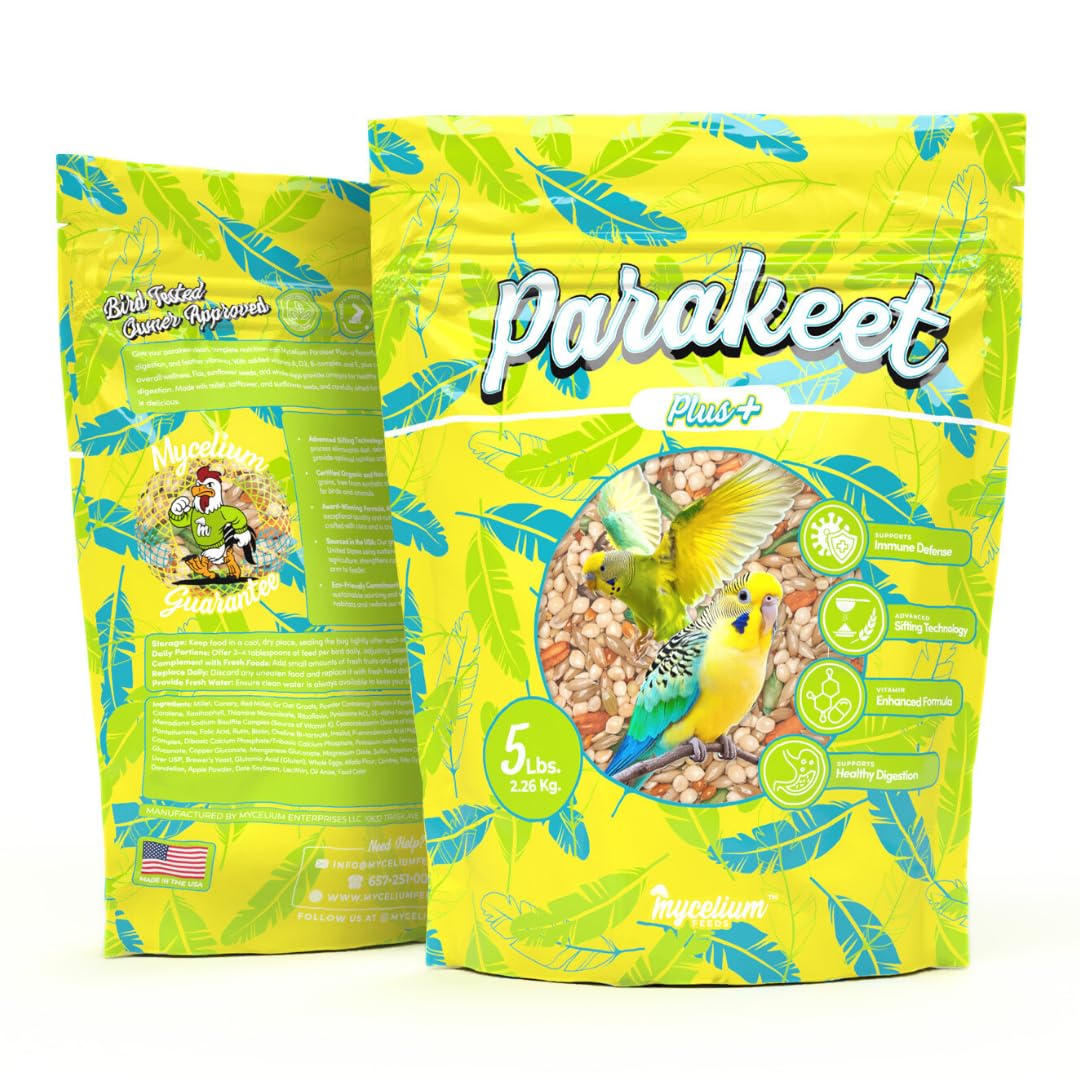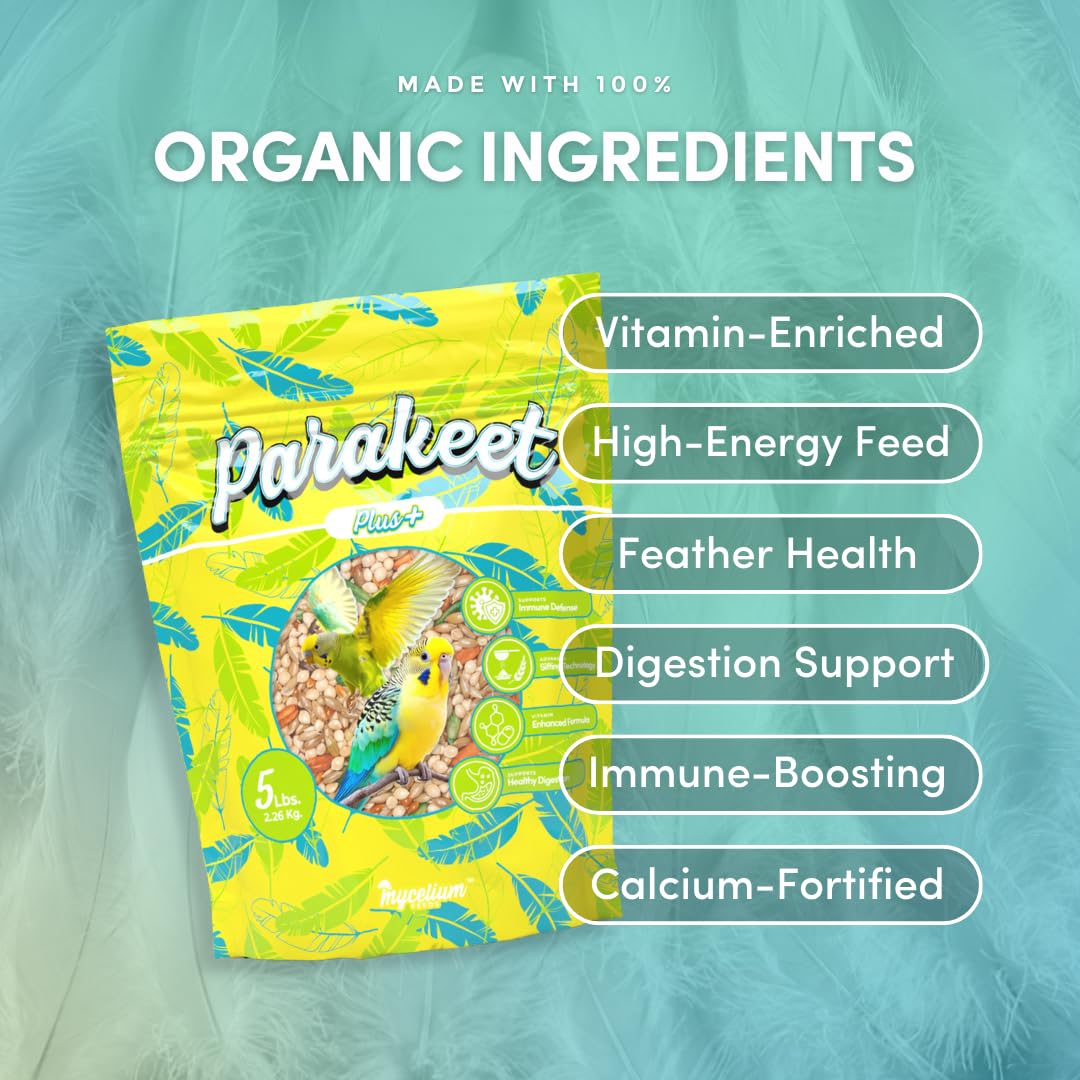 Mycelium Parakeet Plus Bird Seed (5 LB Bag) | Organic Bird Food Fortified with Vitamins for Immune & Digestive Support | Daily Nutrition for Parakeets & Budgies | Non-GMO, Clean Seed Blend | USA Made