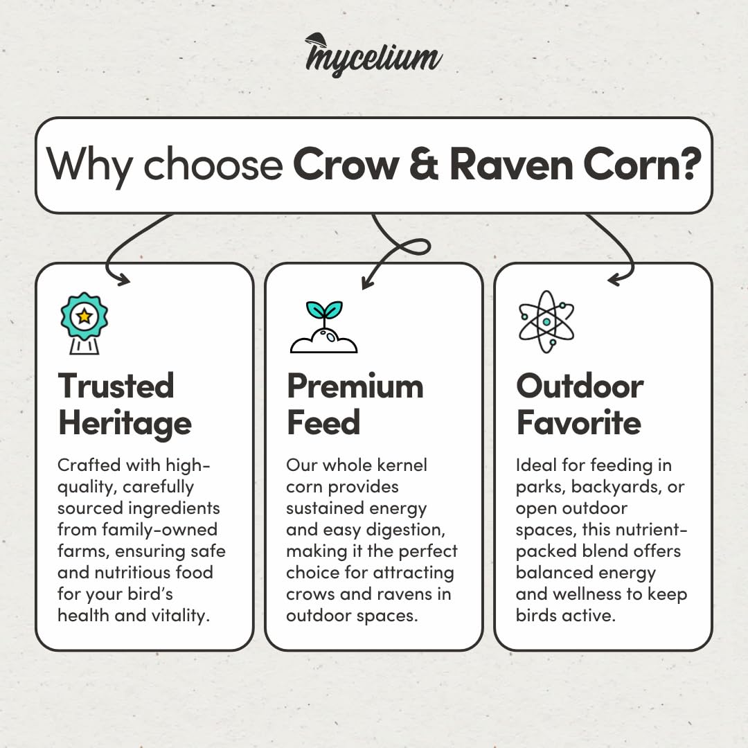 Mycelium Premium Whole Corn – 5LB Organic Non-GMO Bird Food for Crows, Ravens, Ducks, Geese, and Wild Birds – High-Energy No-Mess Corn Feed for Ground Feeding and Platform Feeders – USA Grown