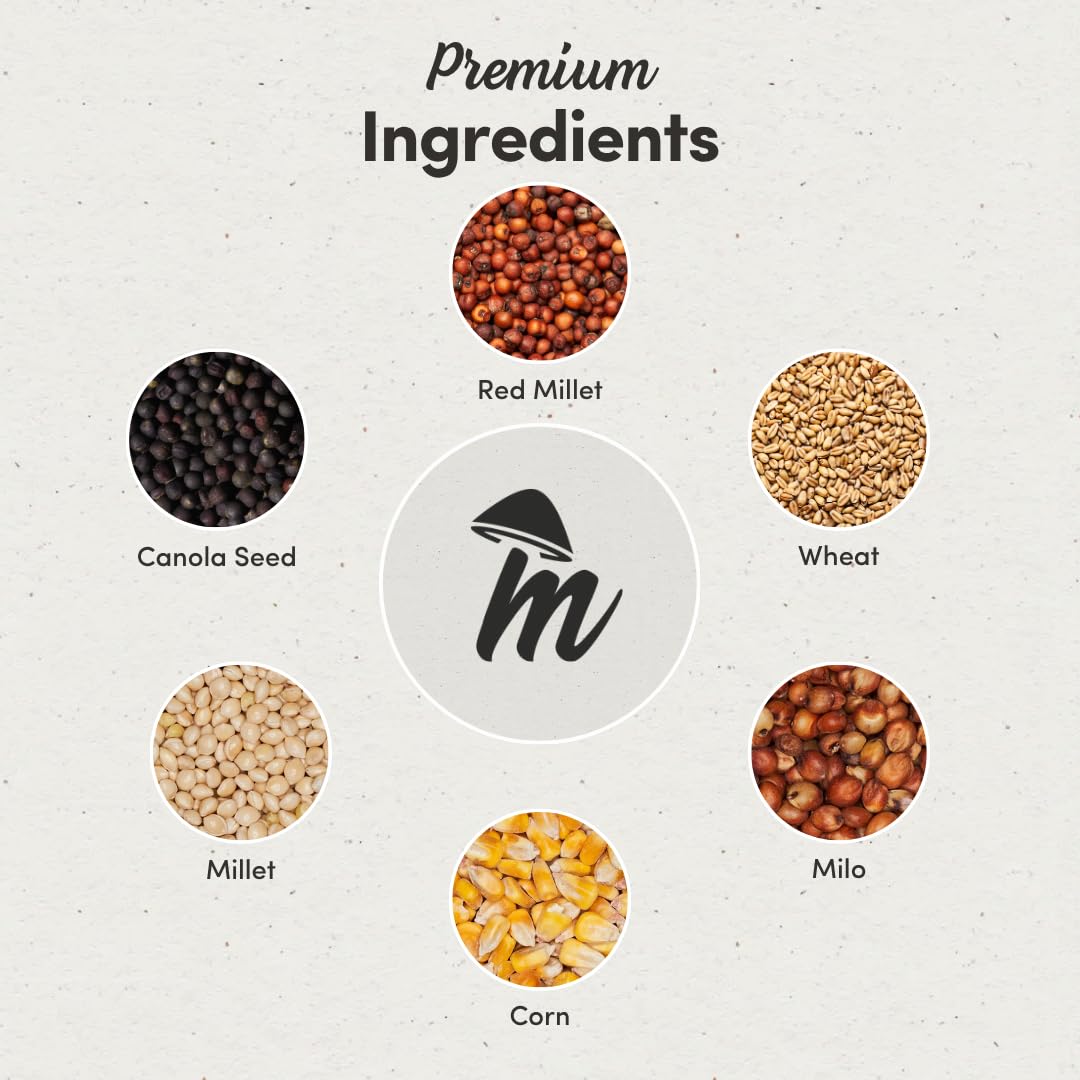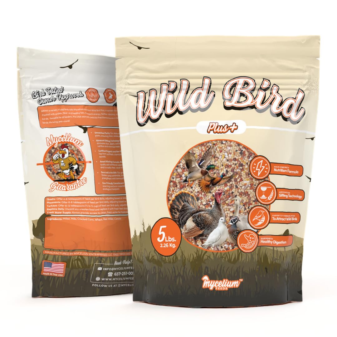 Mycelium Wild Bird Plus Feed (5 LBS) | Organic, Shell-Free Bird Seed for Doves, Pigeons, Quail & Game Birds | Clean, Low-Mess Wild Bird Food for Outside Feeders | No Sunflower | Non-GMO, Made in USA