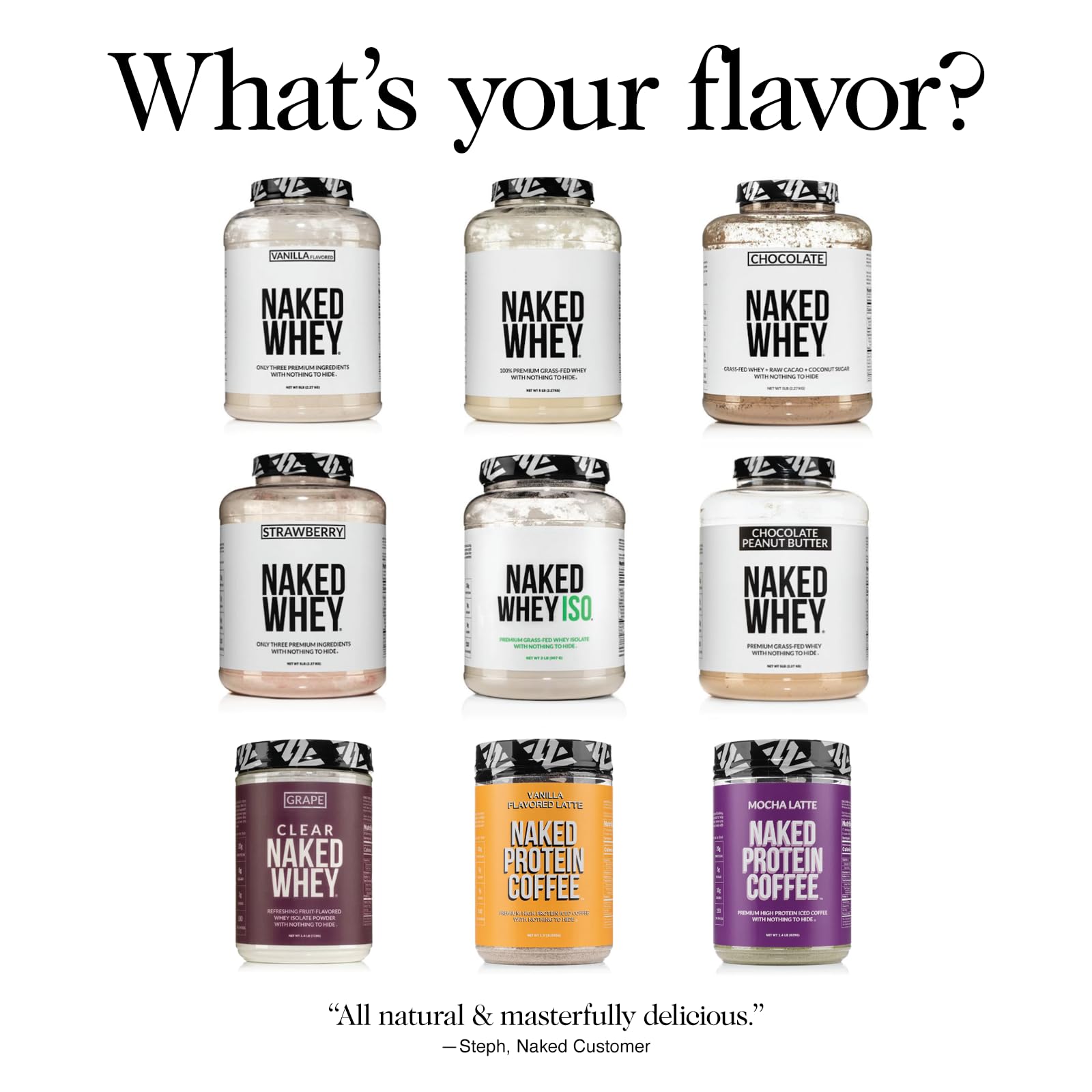 - ONLY ONE INGREDIENT: 100% Grass Fed Pure Whey Protein with zero additives. Naked Whey no artificial sweeteners, flavors, or colors and is GMO-Free, No rBGH or rBST, Soy Free and Gluten-Free.