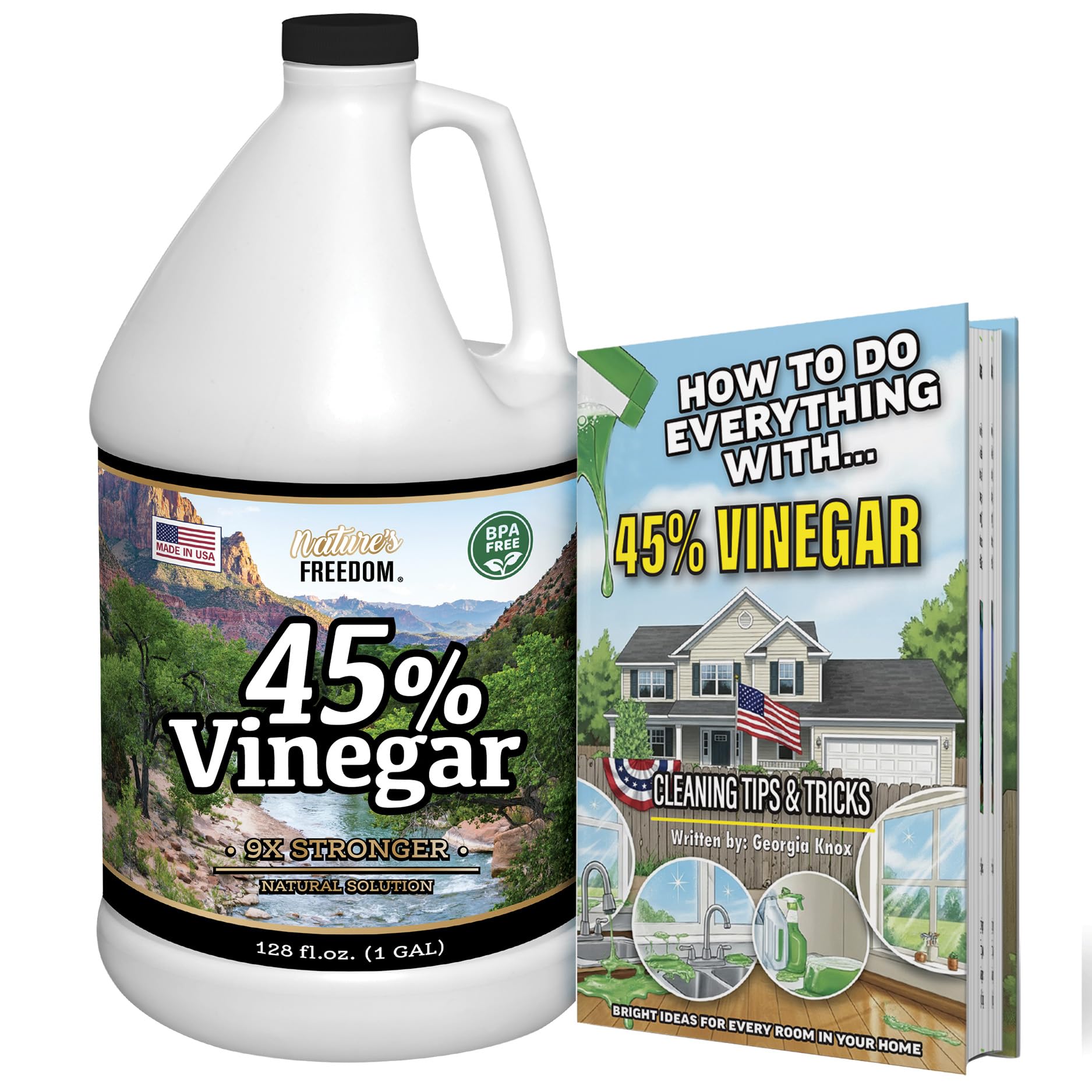 - Includes 1 gallon of high-strength 45% vinegar with a matching vinegar cleaning book