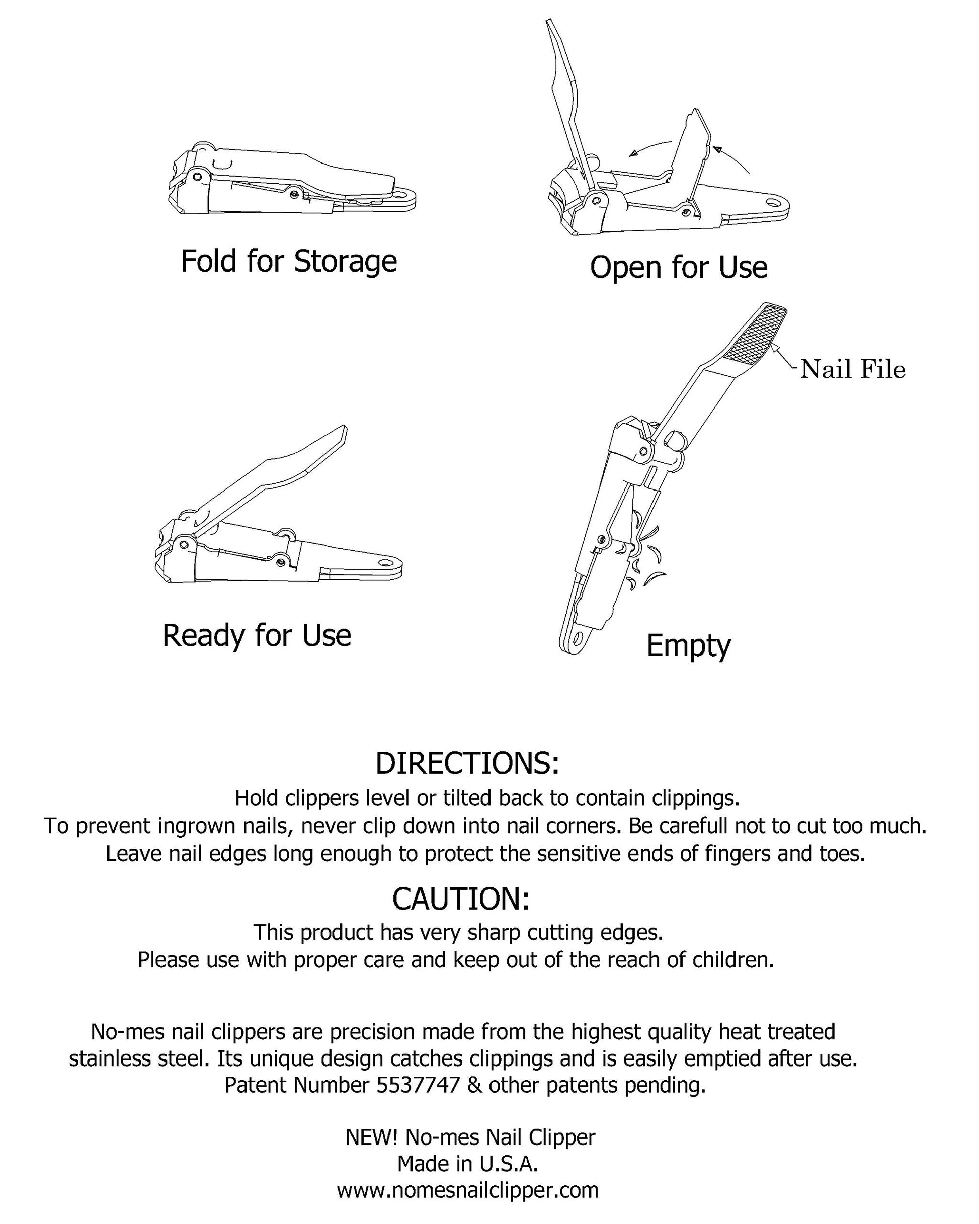 MADE IN USA: The "No-mes" toenail and fingernail clipper are designed and 100% manufactured in the USA.