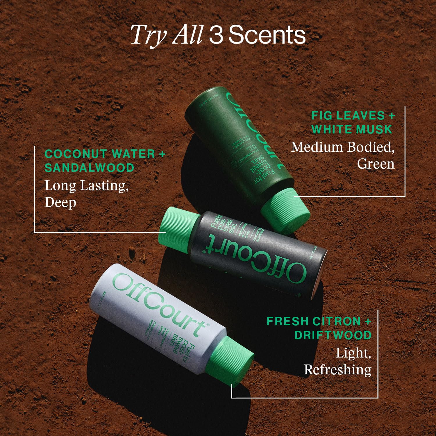 - Green and Clean Scent: This is not the body spray of your teenage years; Confidently apply OffCourt men's body spray generously, with a Fig Leaves and White Musk scent that will last 6 to 8 hours; Fragrance includes notes of fig leaves, vetiver, and white musk