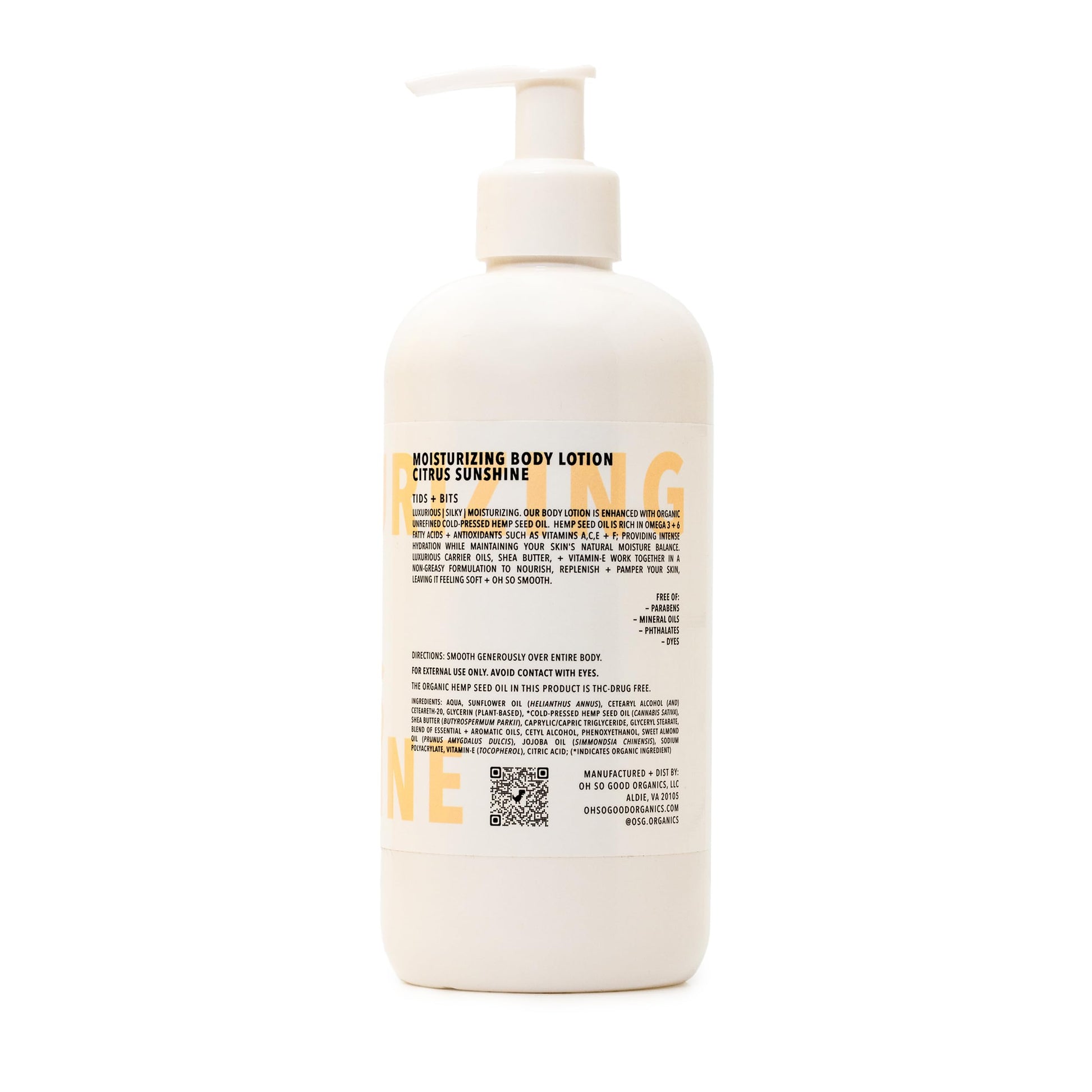 - CITRUS-INFUSED MOISTURE: Wake up your skin with the zesty aroma of Citrus Sunshine—a refreshing twist on your daily routine that pairs vibrant scent with nourishing hydration in this organic hemp moisturizing body lotion.