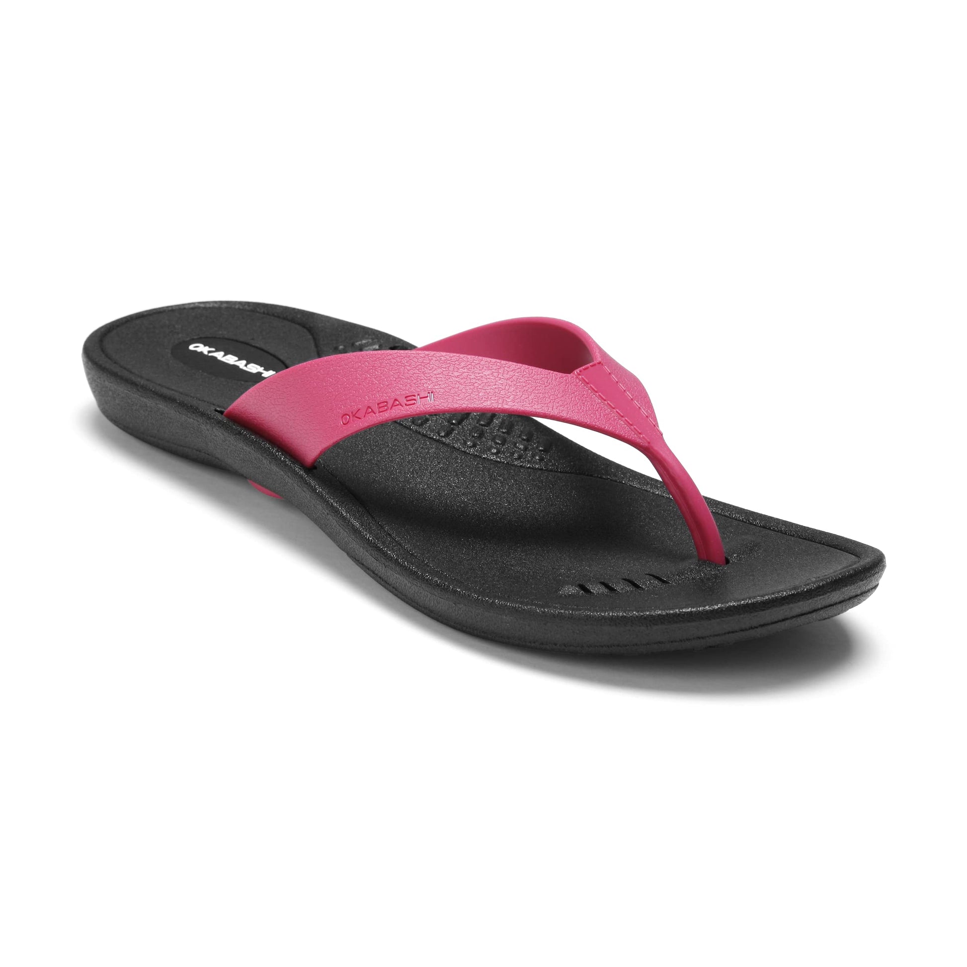 OKABASHI Women's Breeze Flip Flop (Black/Hot Pink) | Contoured Footbed w/Arch Support for All-Day Comfort | Slip-Resistant & Waterproof | Sustainably Made in The USA