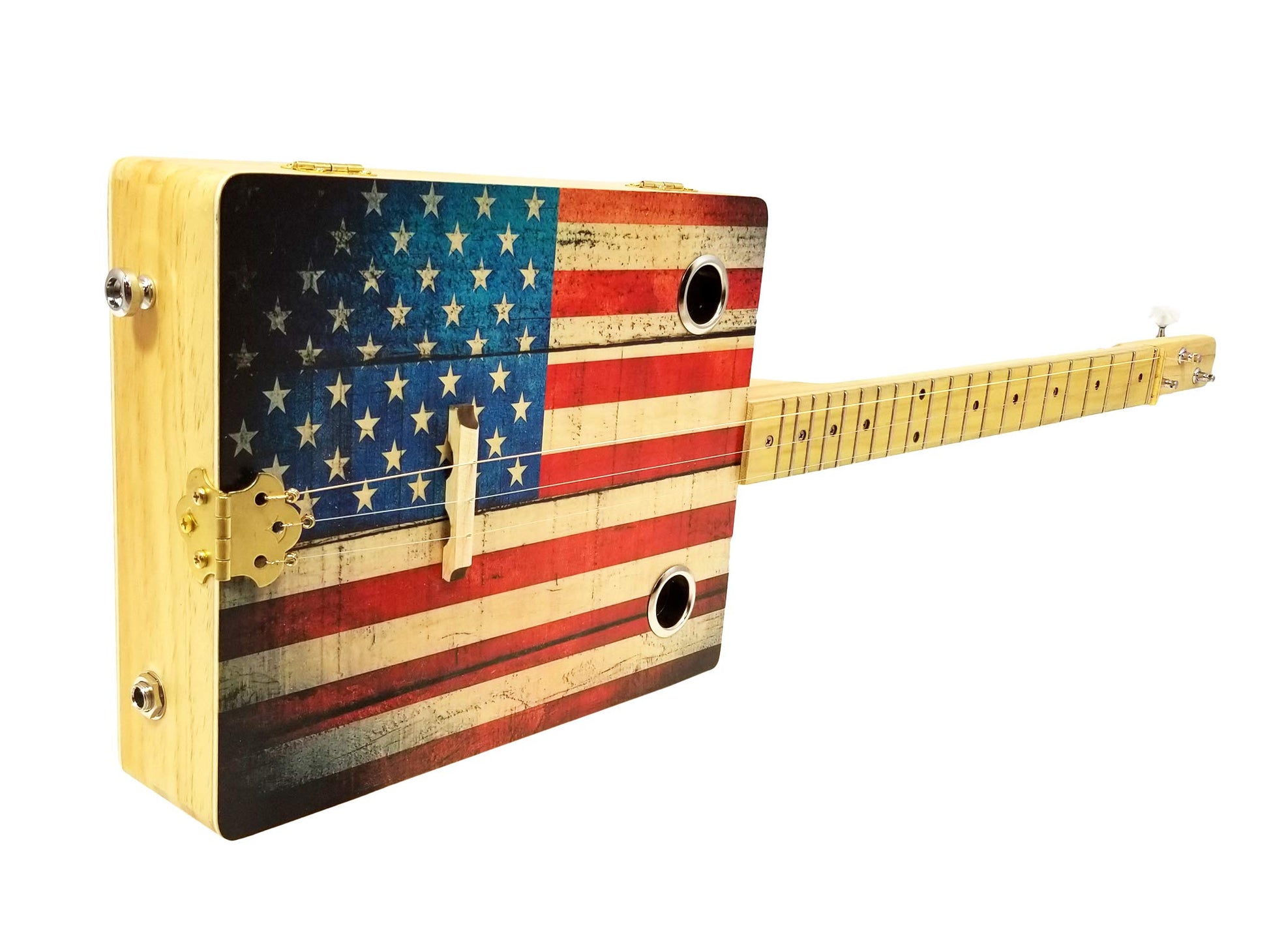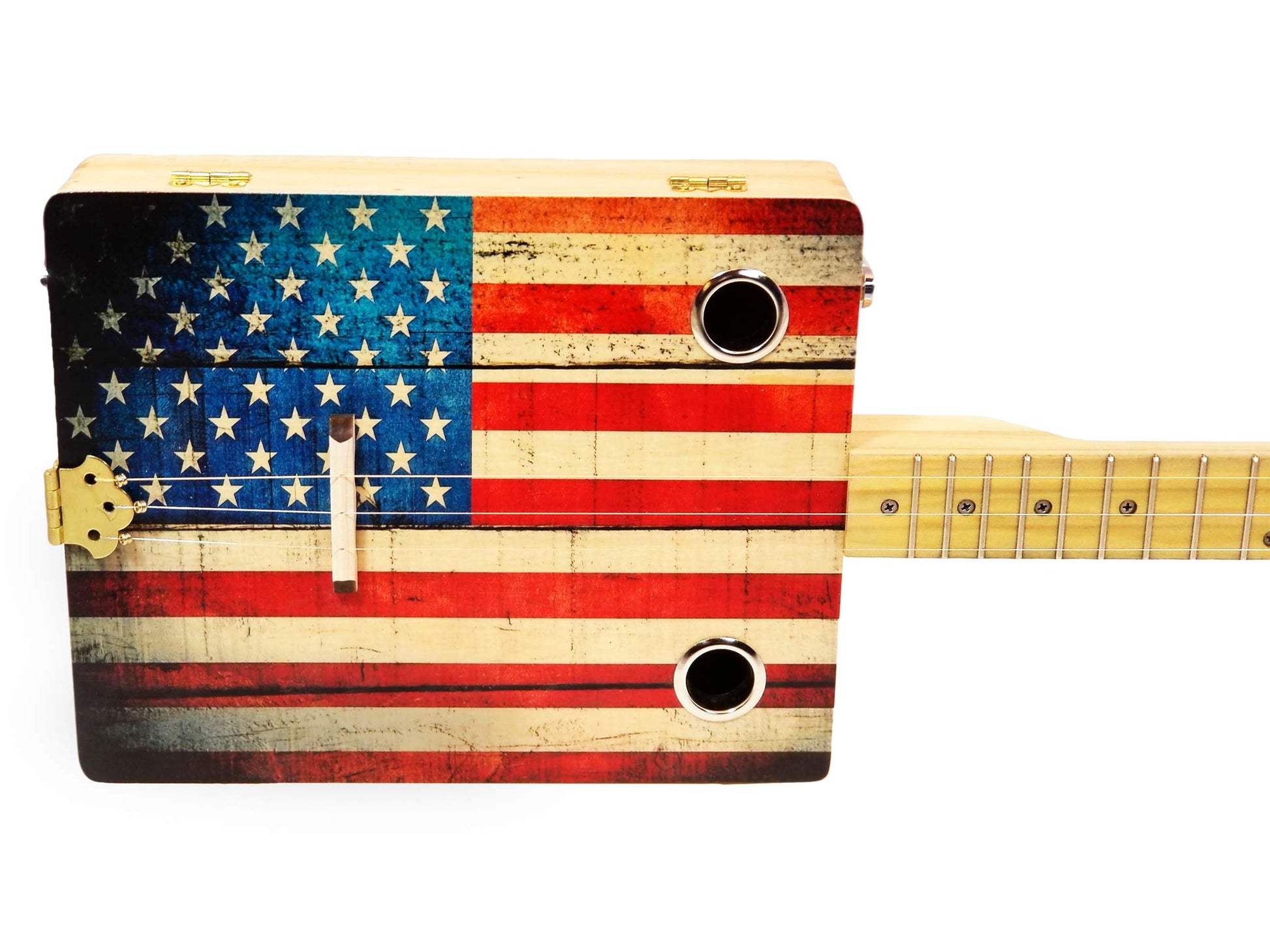 "Old Glory" 3-string Acoustic-Electric Cigar Box Guitar - Fun to Play, Made in the USA!