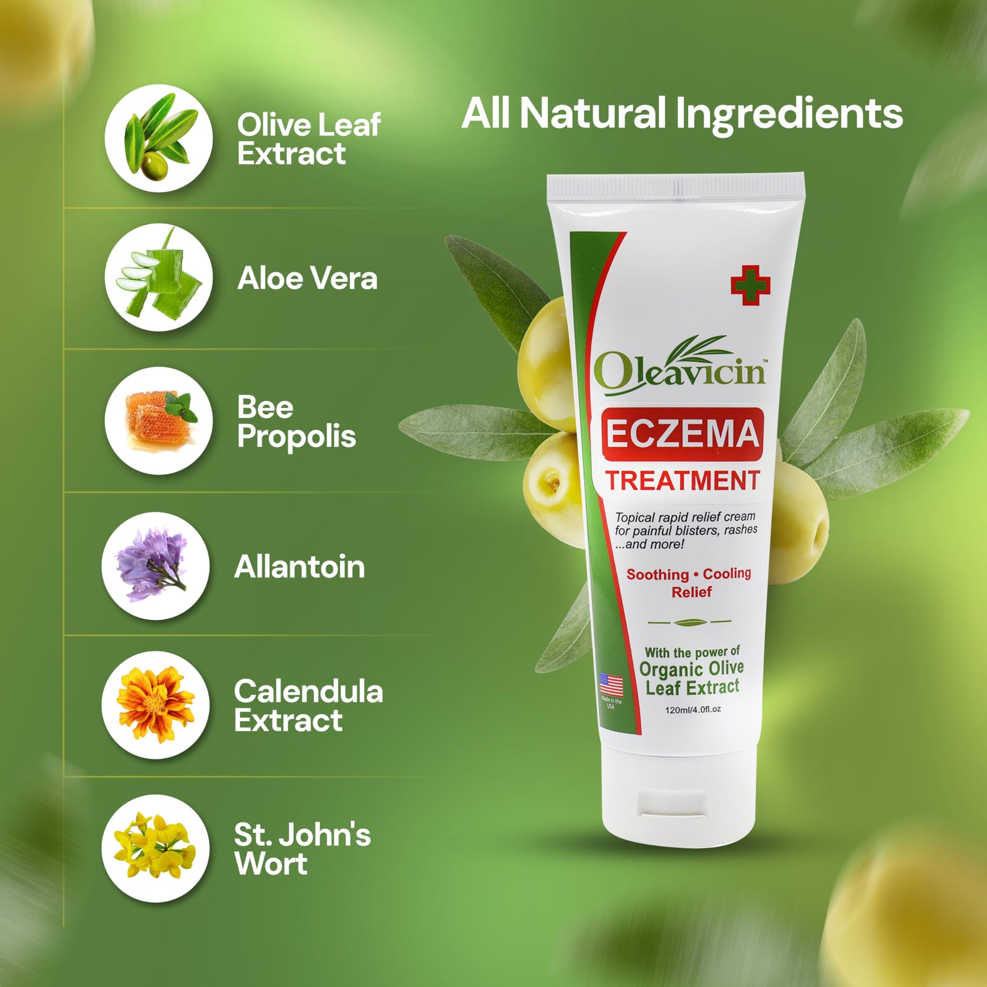 Oleavicin Eczema Treatment Cream - Steroid-Free, Organic Olive Leaf Extract, Soothing & Hydrating for All Skin Types, Kids & Adults