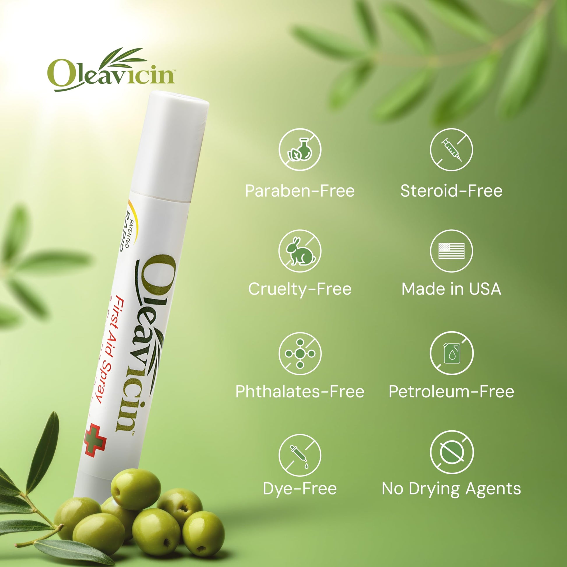 Oleavicin First Aid Spray & Bug Bite Relief - 1 Pack – Organic Olive Leaf Extract | Fast-Acting Relief for Minor Skin Irritations, Bug Bites & Burns | Natural & Clinically Proven | 0.17 oz (5ml)