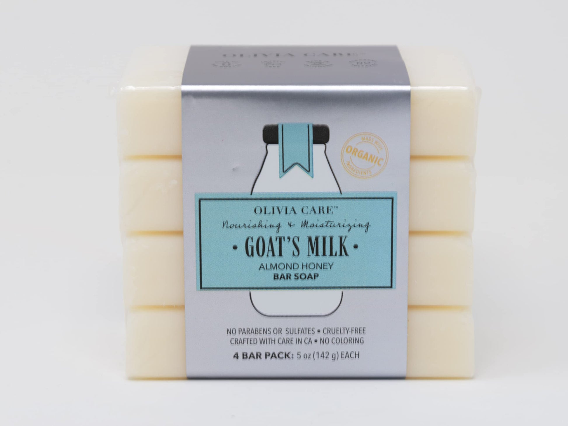 Olivia Care Goat's Milk Organic Bar Soap 4 Pack of 5 oz Bars Made in the USA (Almond Honey)